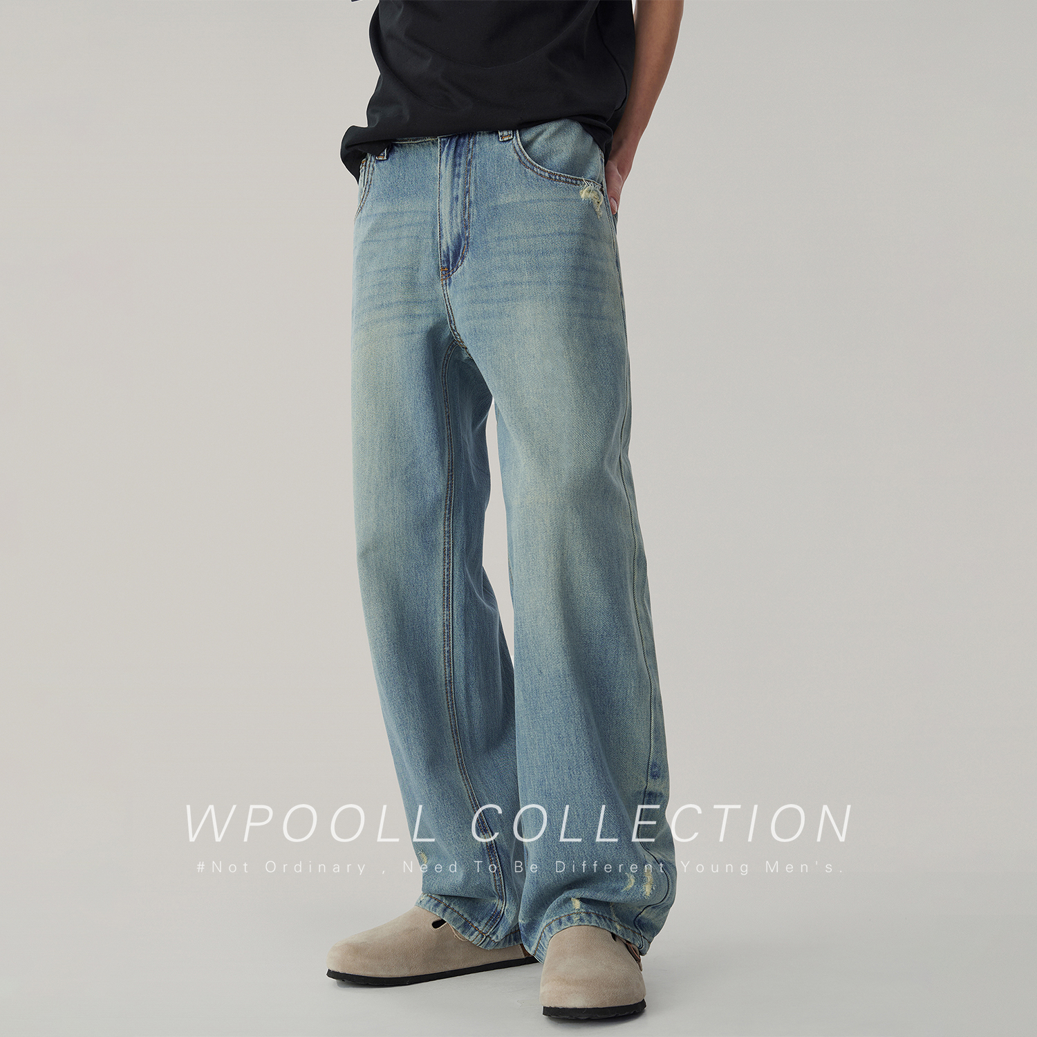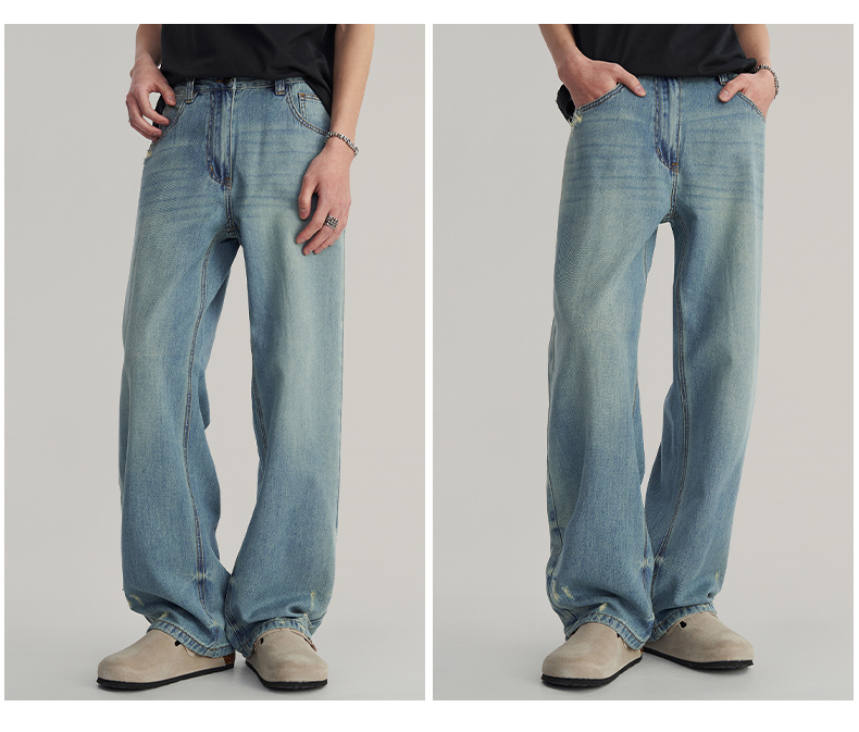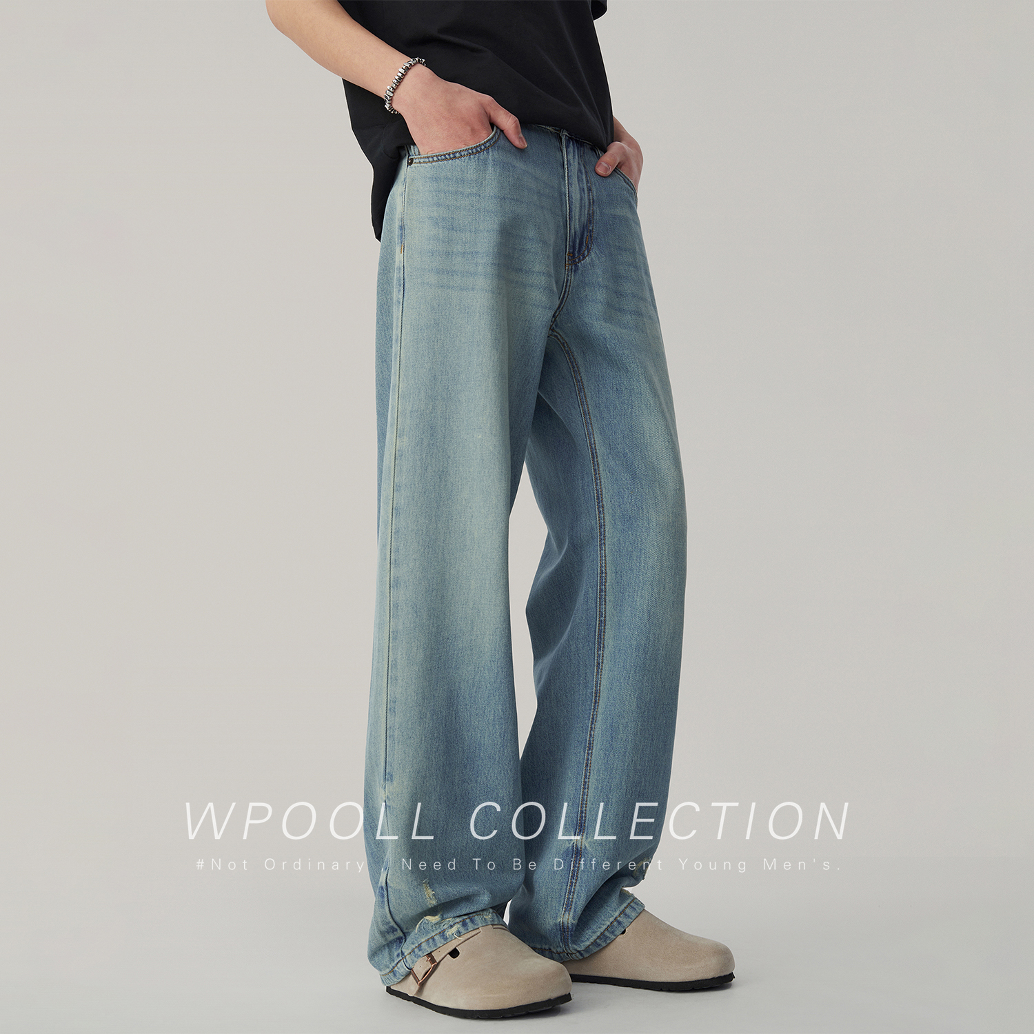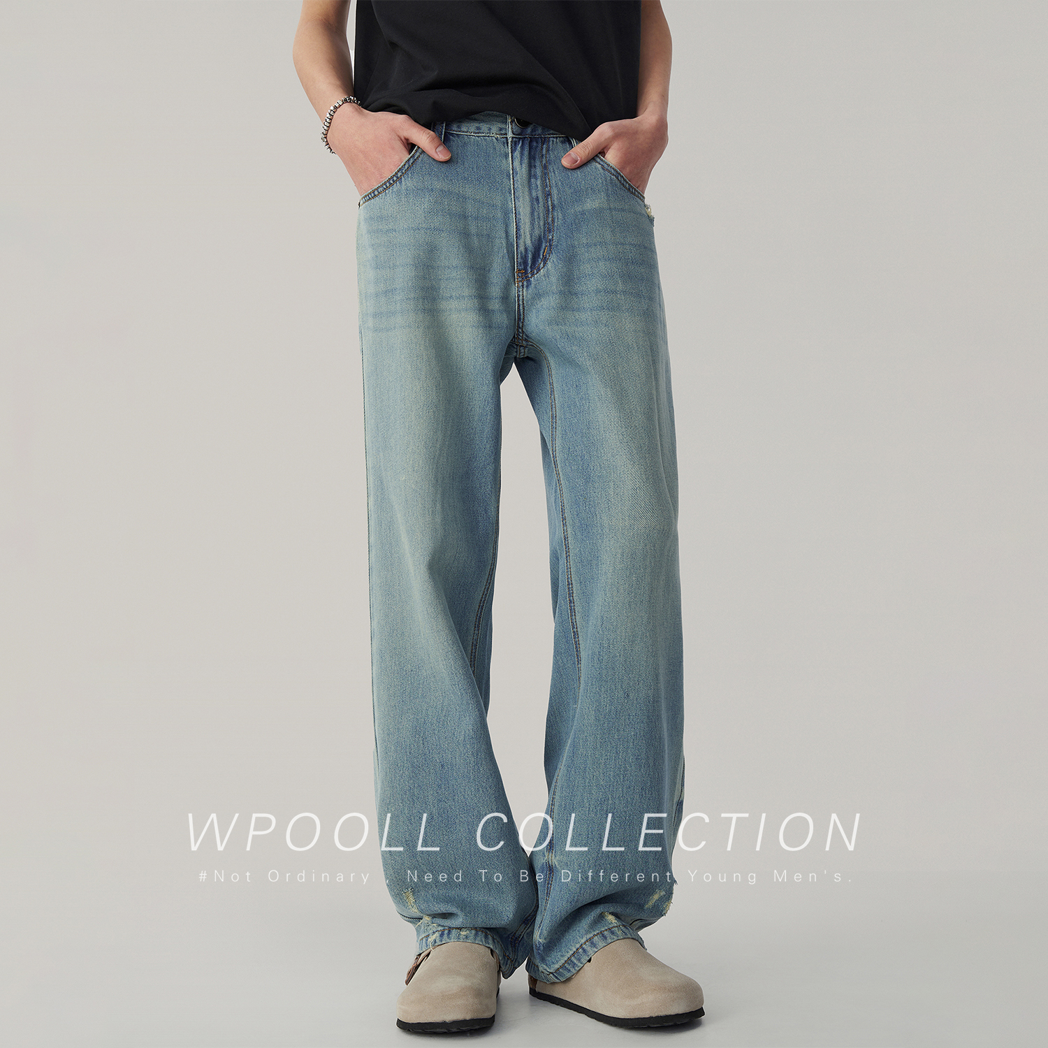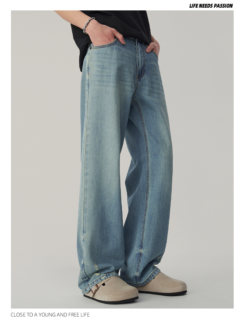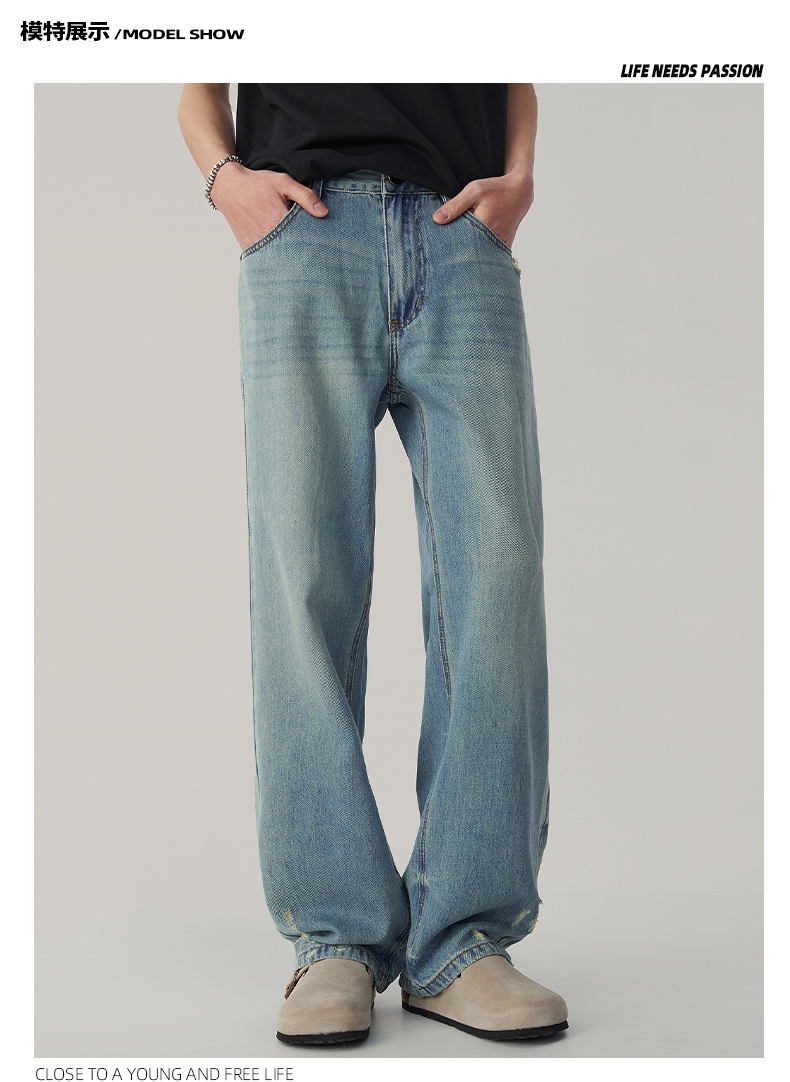 Wpooll 레이온 텐셀 남성용 청바지 2026 가을 얇은 루즈핏 스트레이트 라이트 컬러 드레이프 와이드 팬츠스토어 가기
