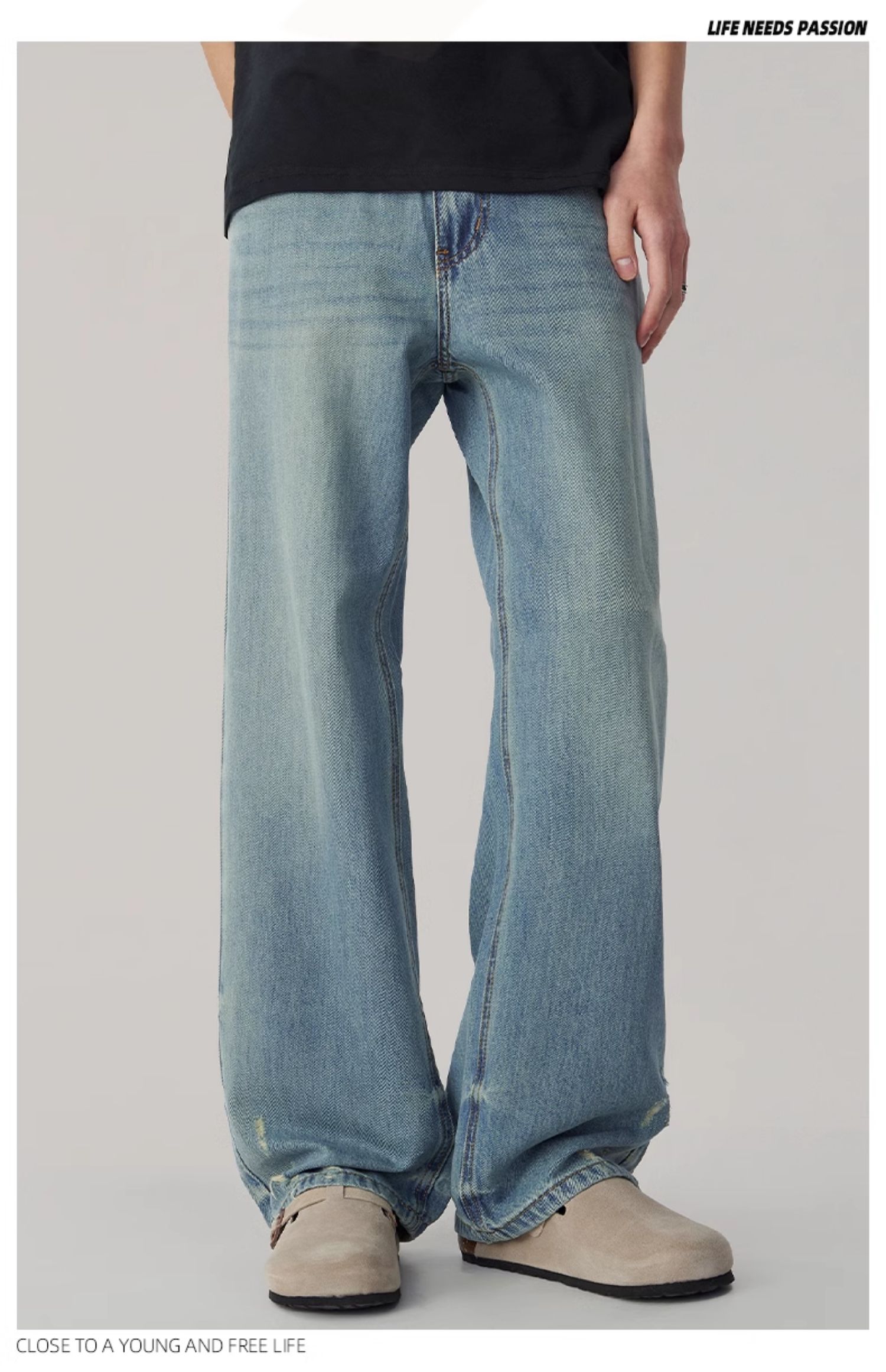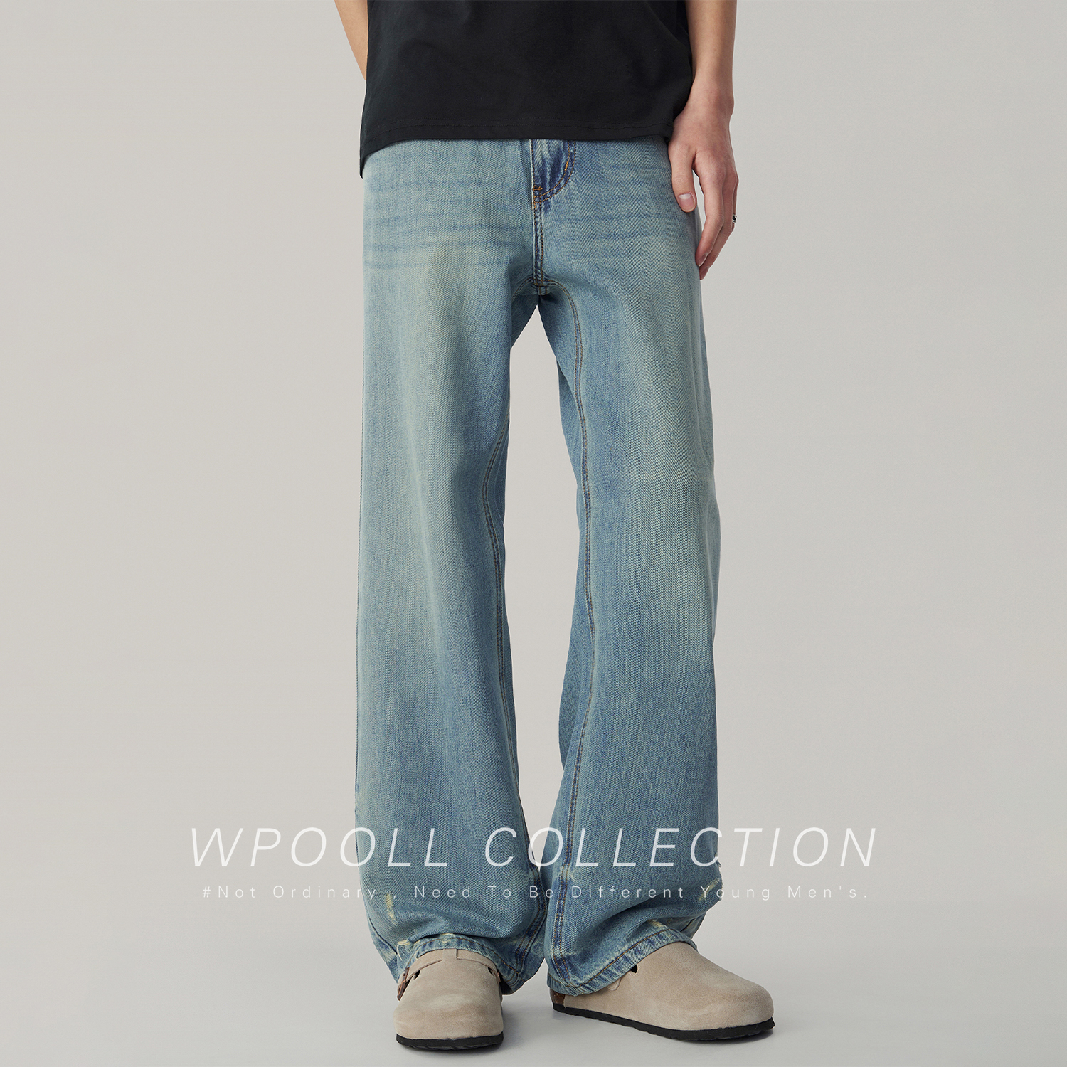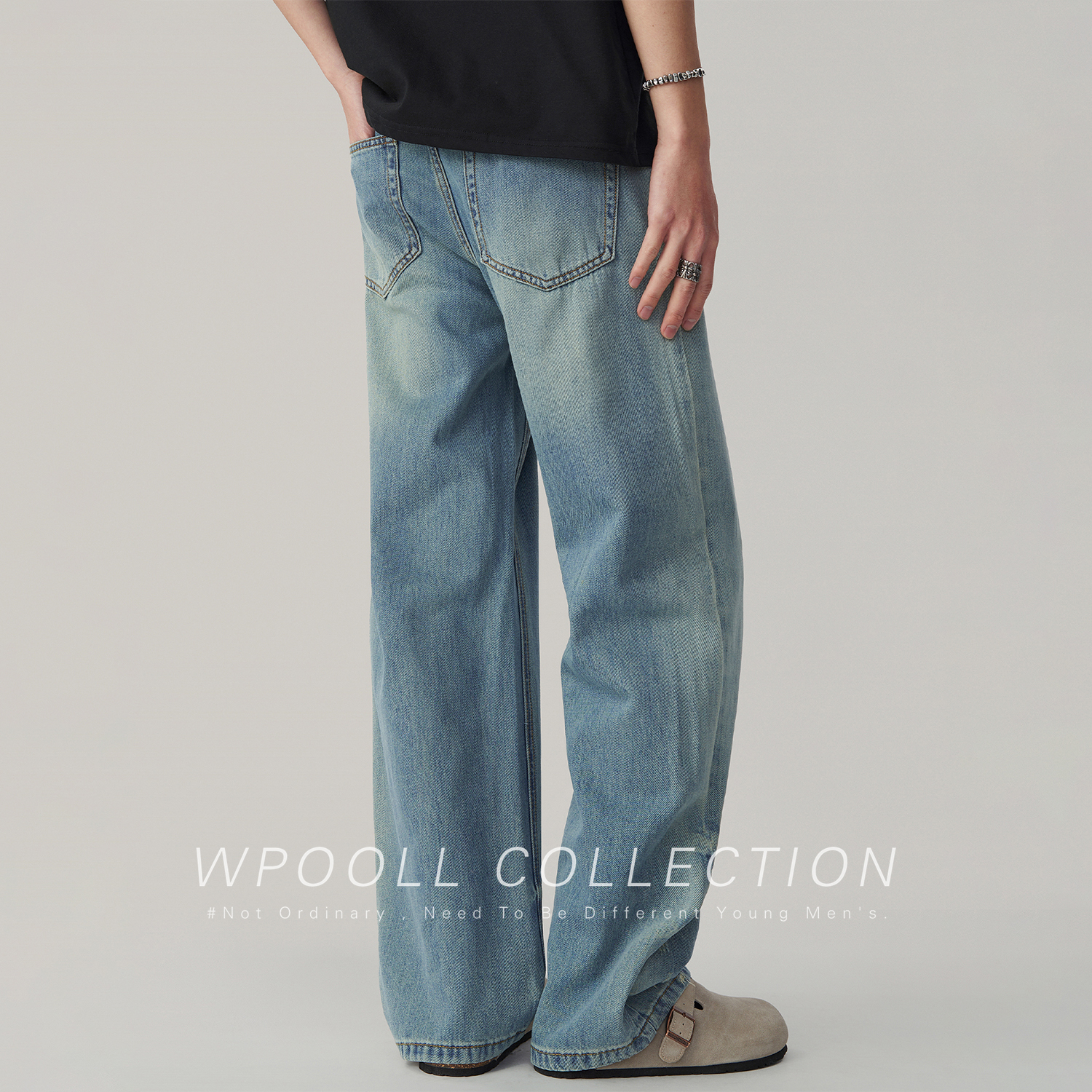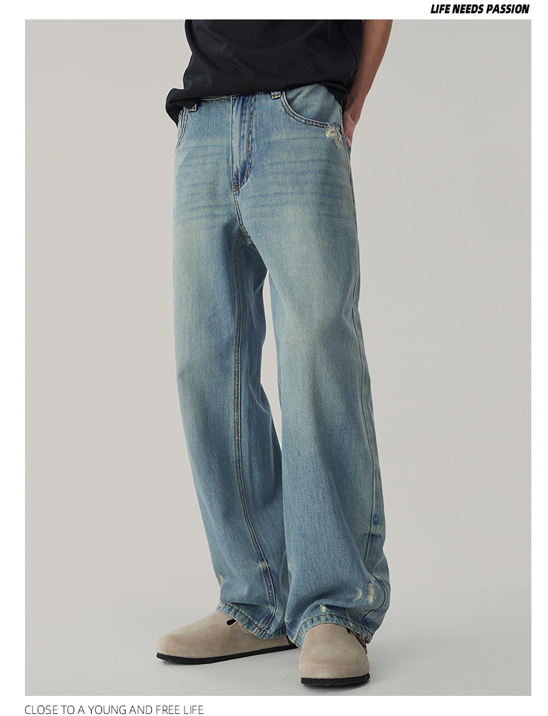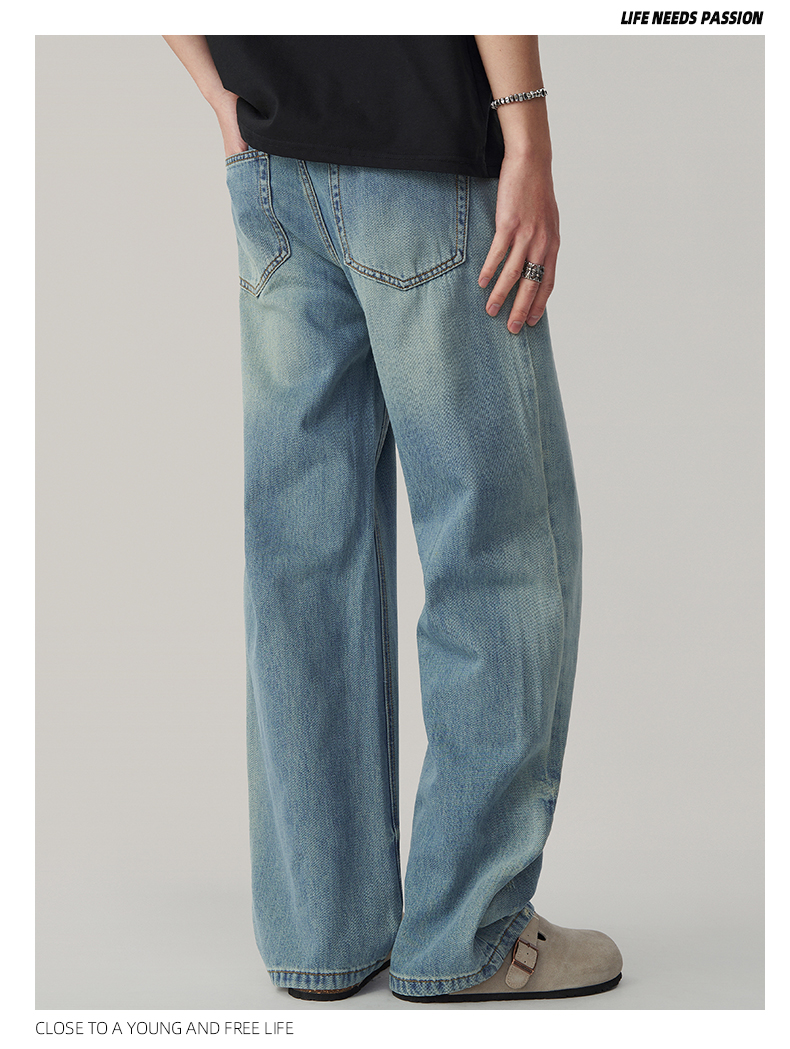Wpooll 레이온 텐셀 남성용 청바지 2026 가을 얇은 루즈핏 스트레이트 라이트 컬러 드레이프 와이드 팬츠스토어 가기