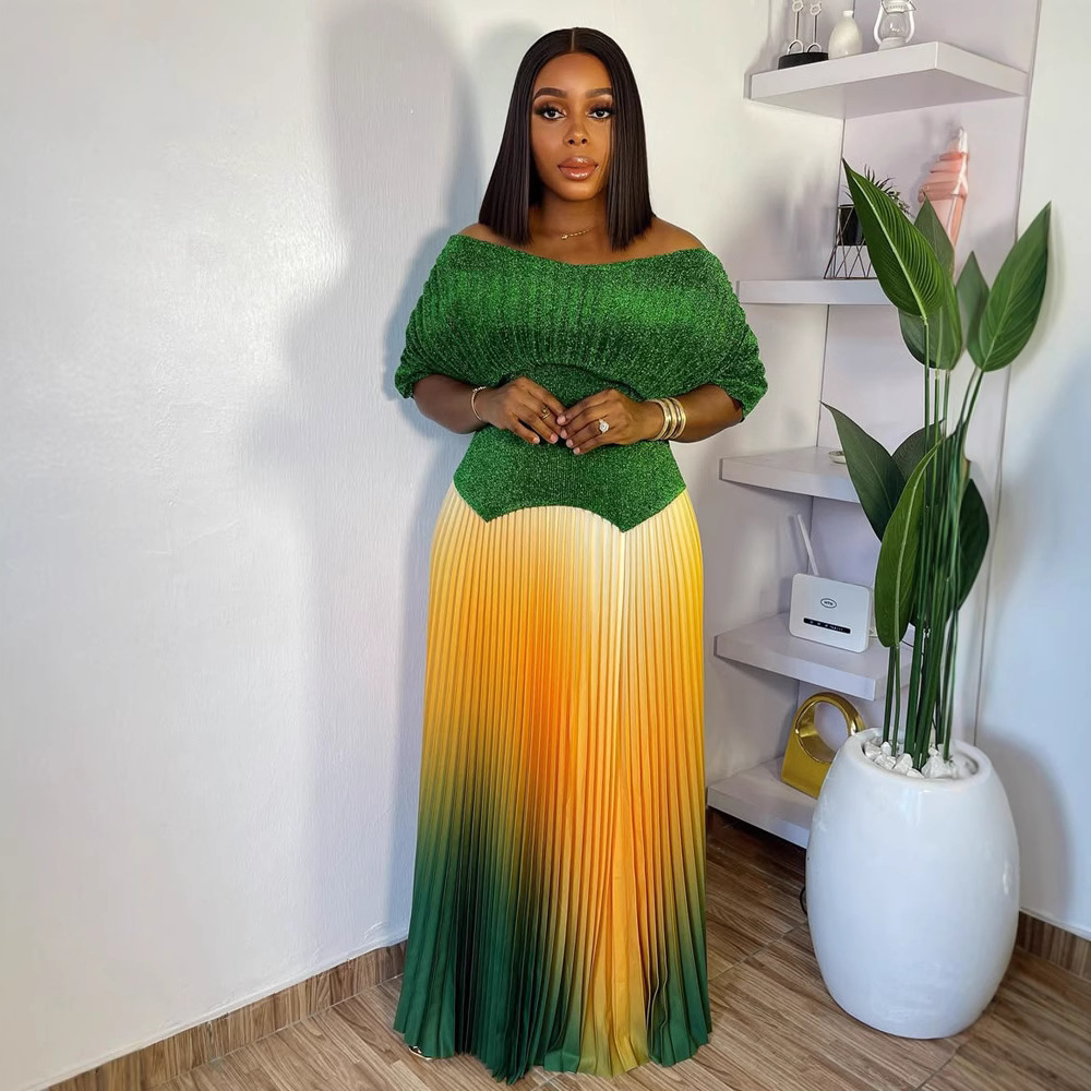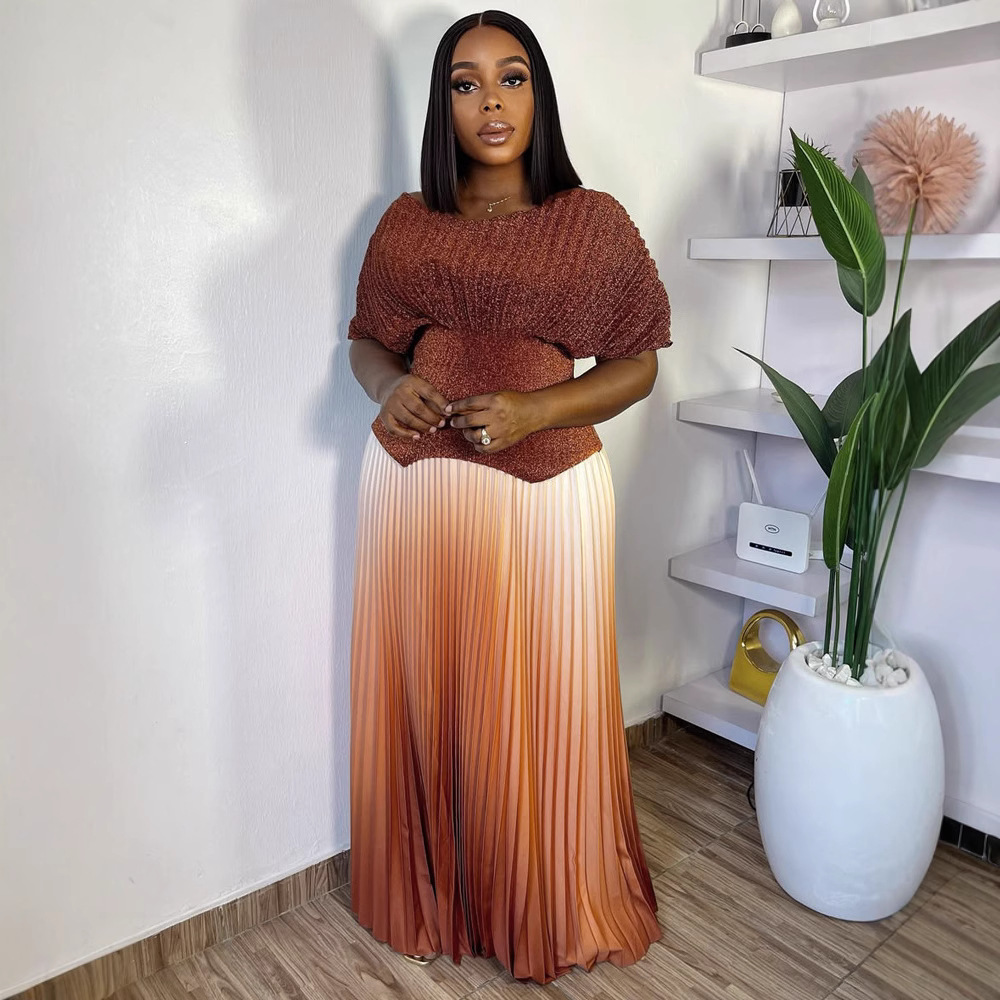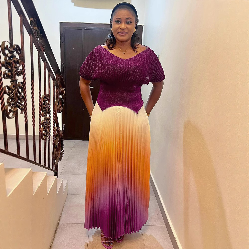 공장 아울렛 Miyake Miyake 2025 여름 새로운 아프리카 플러스 사이즈 접힌 그라디언트 하이 엔드 원피스 여성