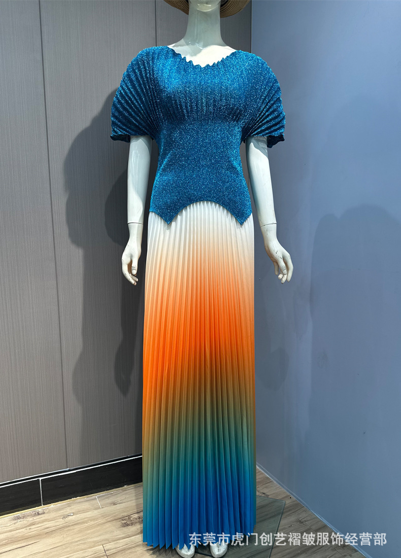 공장 아울렛 Miyake Miyake 2025 여름 새로운 아프리카 플러스 사이즈 접힌 그라디언트 하이 엔드 원피스 여성스토어 가기