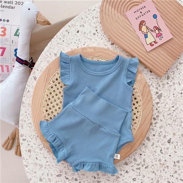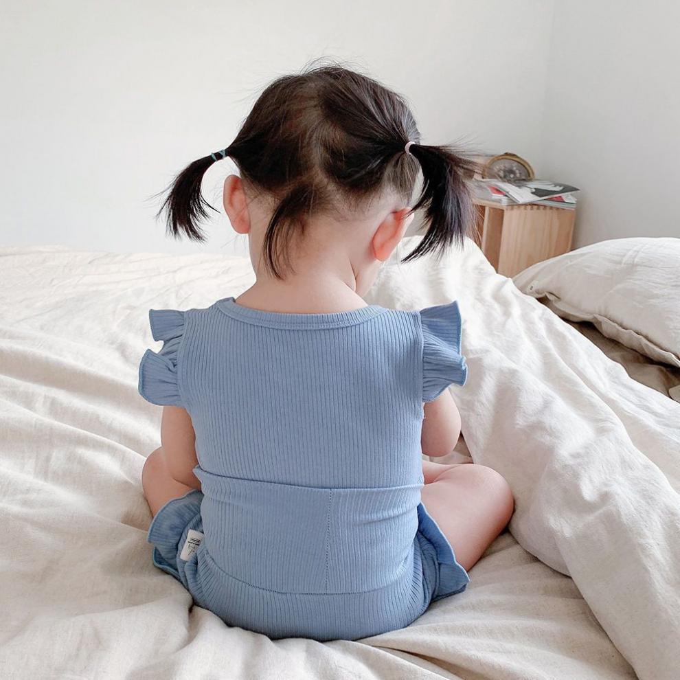 아기 여름옷, 아동복, 여아용 홈웨어 세트, 여아용 버섯 트리밍 상의, 여아용 하이웨이스트 반바지 투피스 세트스토어 가기