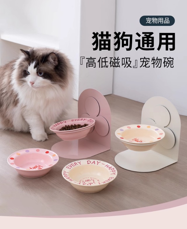 애완동물 자석 철제 고양이 그릇, 검은 턱 방지 고양이 사료 그릇, 세라믹 개 사료 그릇, 고양이 뒤집힘 방지 물 그릇, 목 보호대스토어 가기