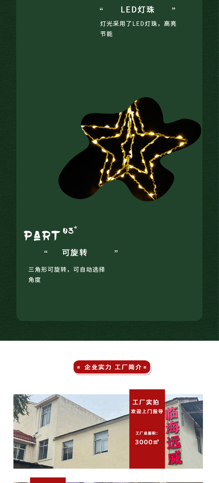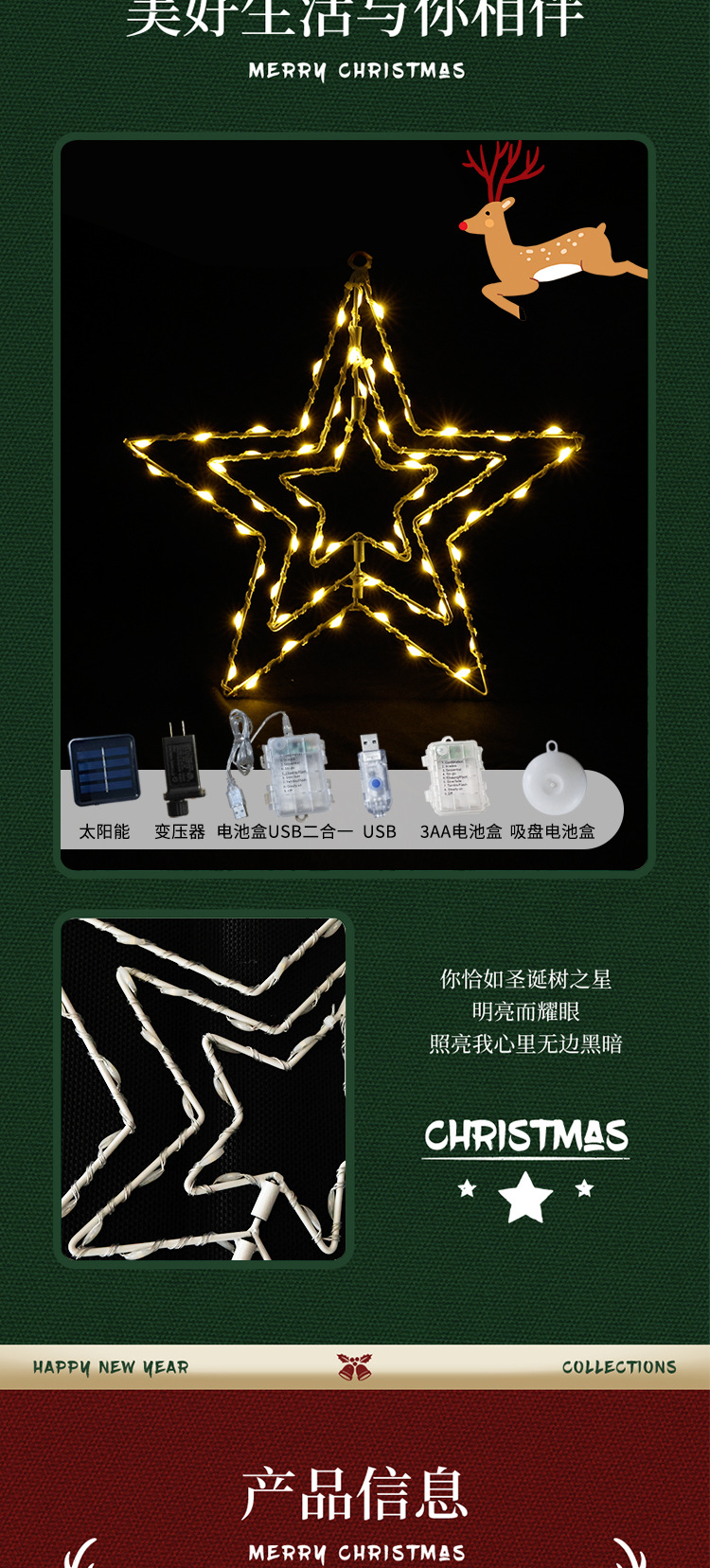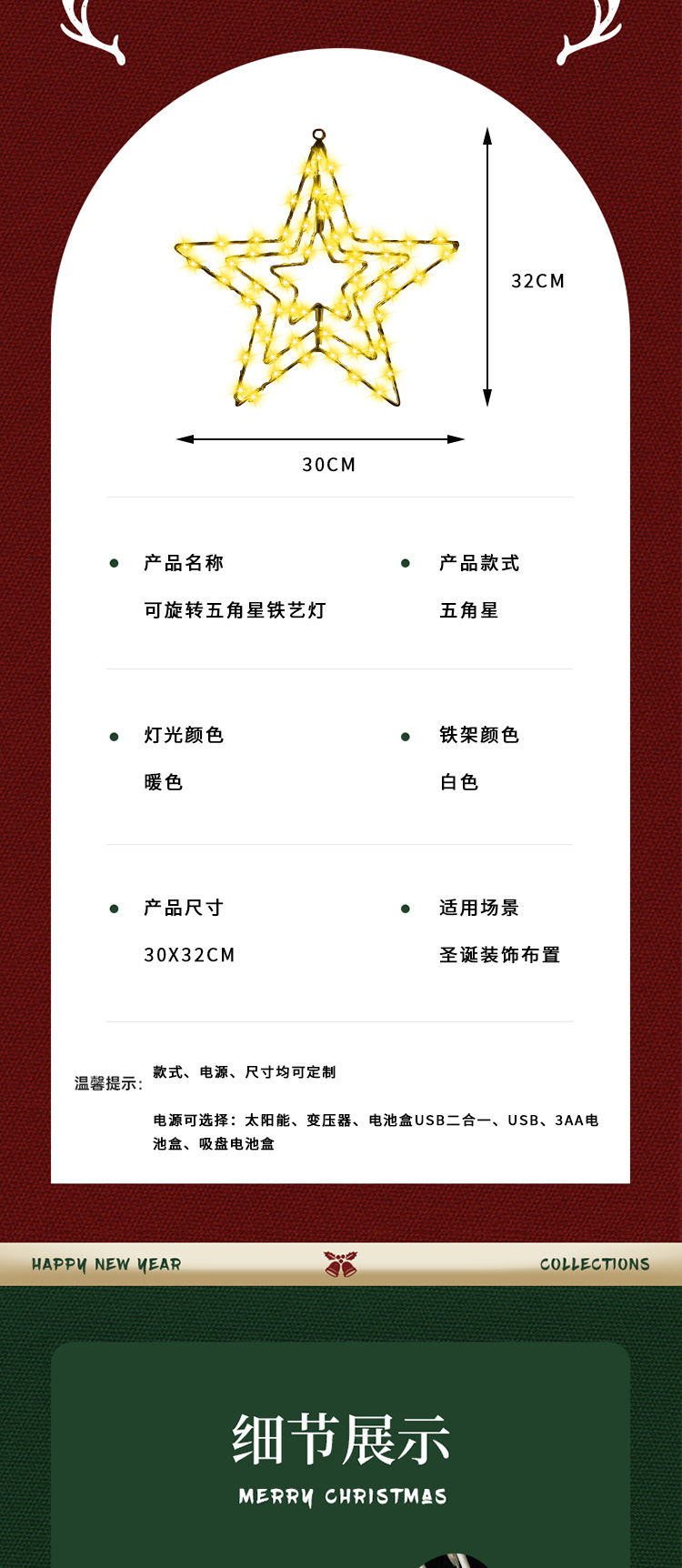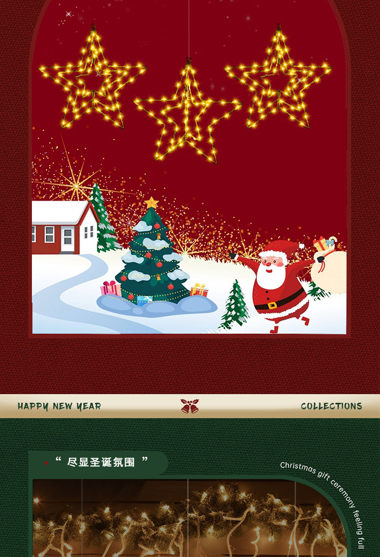 • 회전하는 다섯개 별, 따뜻한 색상, 4.5V, 32*30CM, 3AA 배터리 상자 항상 켜짐, 밝기 조절 가능