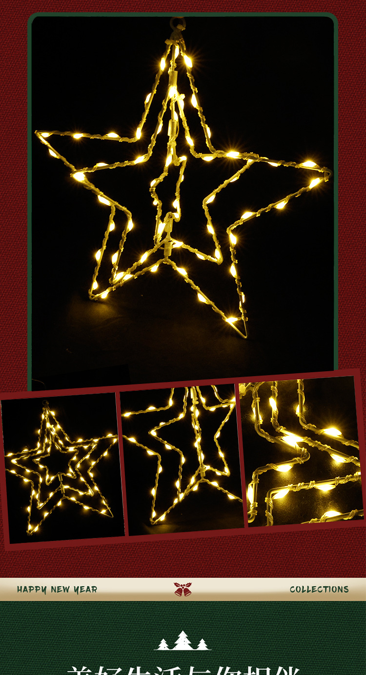 국경 간 뜨거운 판매 회전 다섯개 별 빛나는 크리스마스 장식 창 조명 실내 및 실외 스타일 철 조명 안뜰 조명스토어 가기