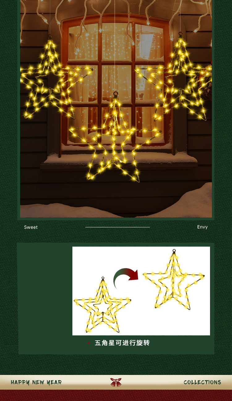 국경 간 뜨거운 판매 회전 다섯개 별 빛나는 크리스마스 장식 창 조명 실내 및 실외 스타일 철 조명 안뜰 조명