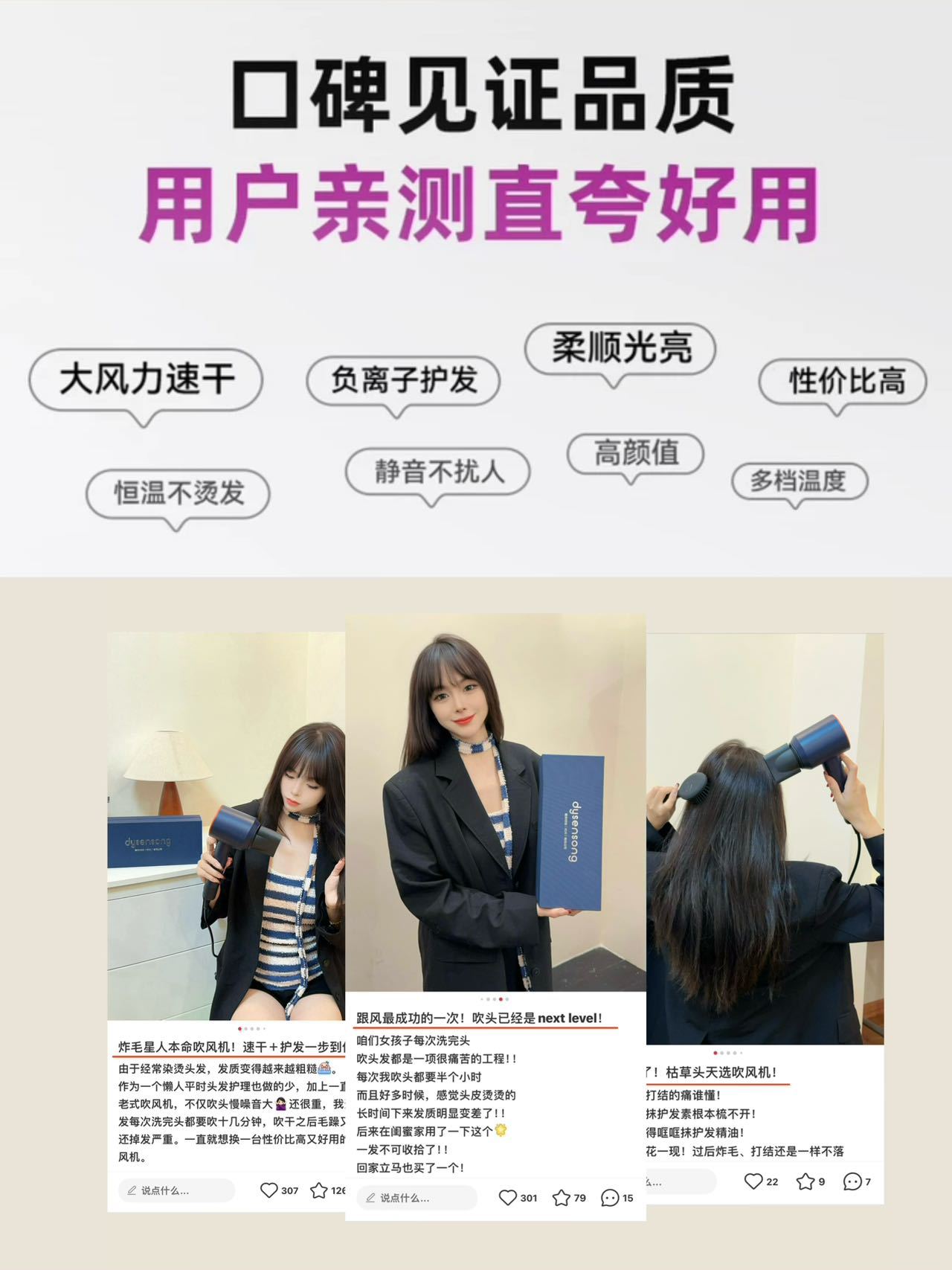 某森同款吹风机高品质家用高速无叶负离子电吹风大功率恒温护发