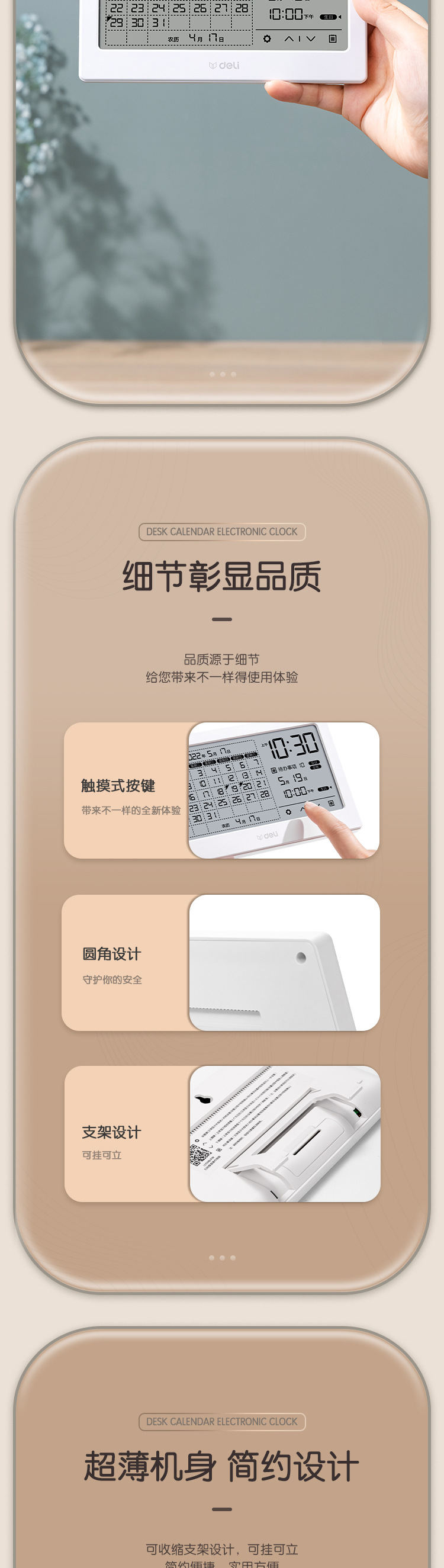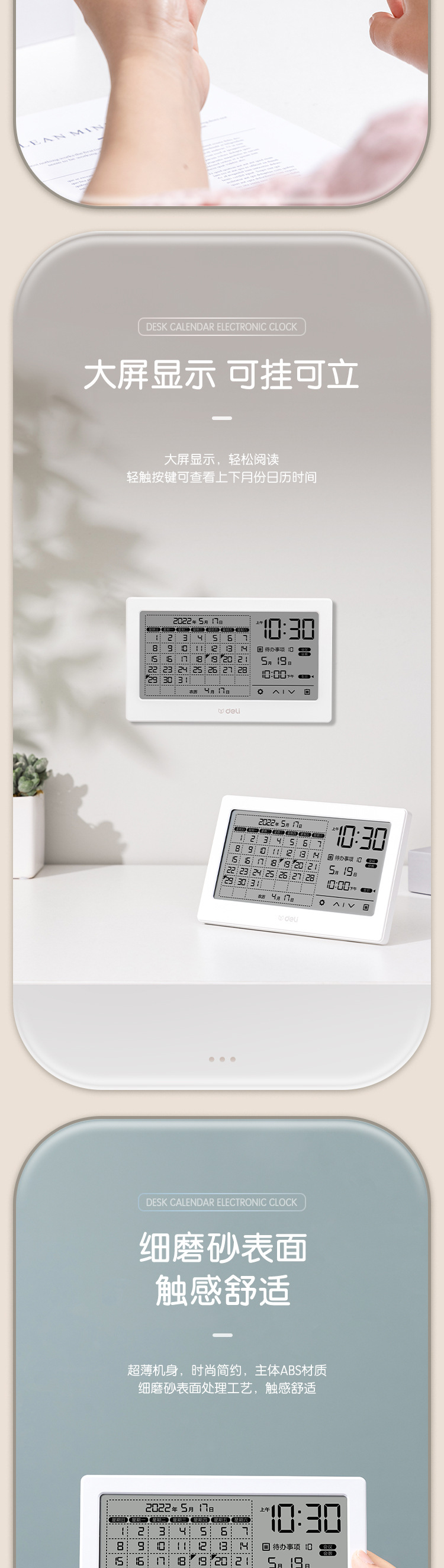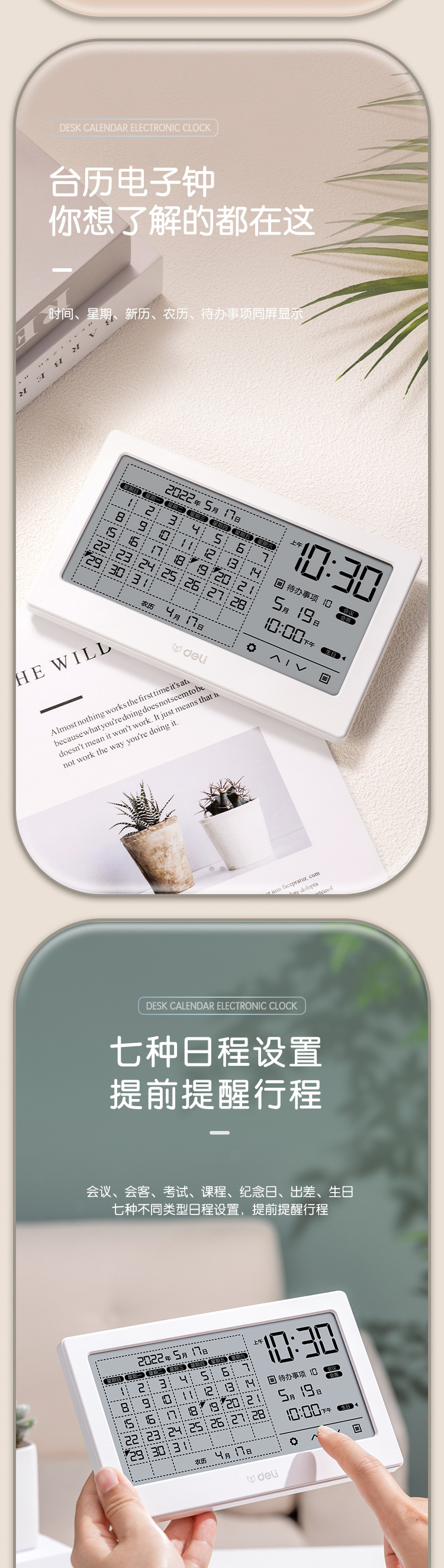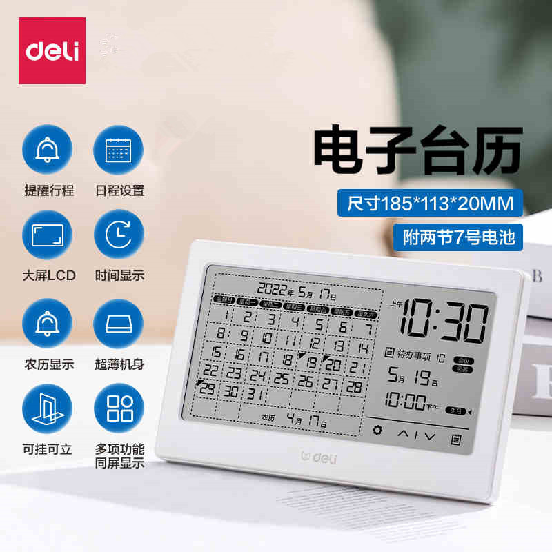 델리 LE109 다기능 전자 알람 시계 창의적이고 간단한 비즈니스 사무실 전자 달력 데스크탑 장식품 책상 달력