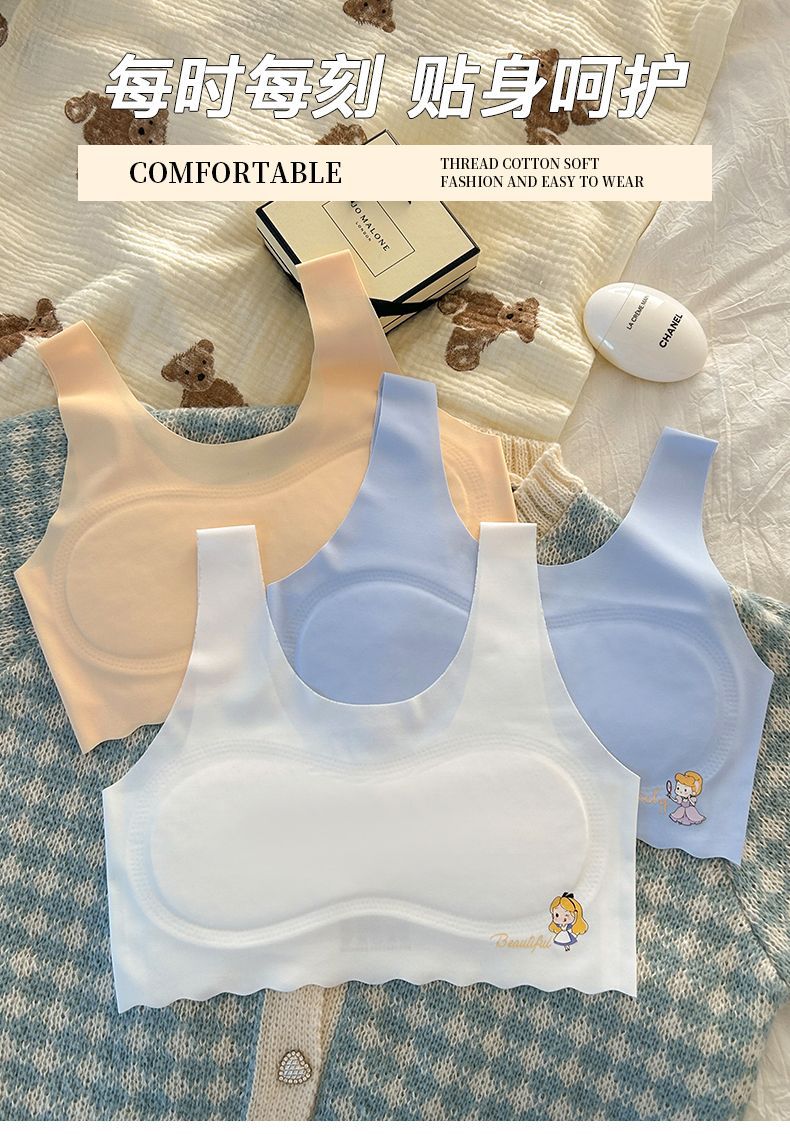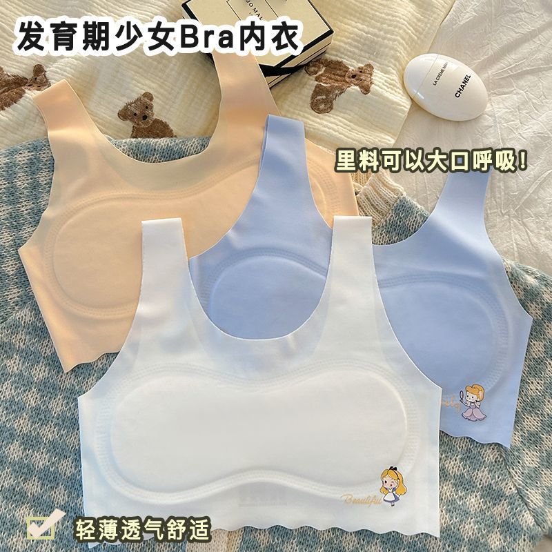 발달 속옷 소녀 여름 얇은 얼음 실크 원활한 소녀 조끼 학생 7-13 세 어린이 브래지어 학생스토어 가기