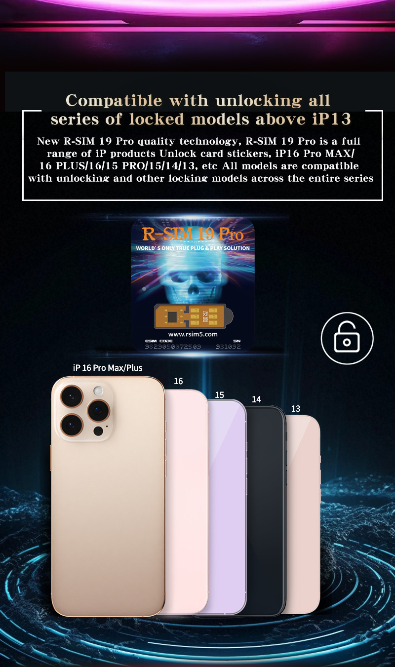 새로운 R-SIM19 프로 완전 자동 잠금 해제 카드 스티커