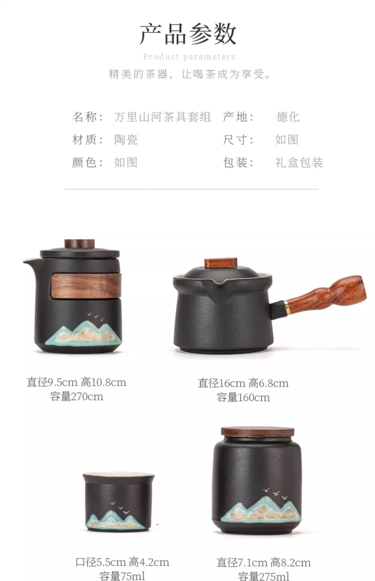 Guochao Qianli Jiangshan 주전자 익스프레스 컵 1 냄비 4 컵 여행 차 세트 야외 주전자 선물 상자 동반 선물 상자