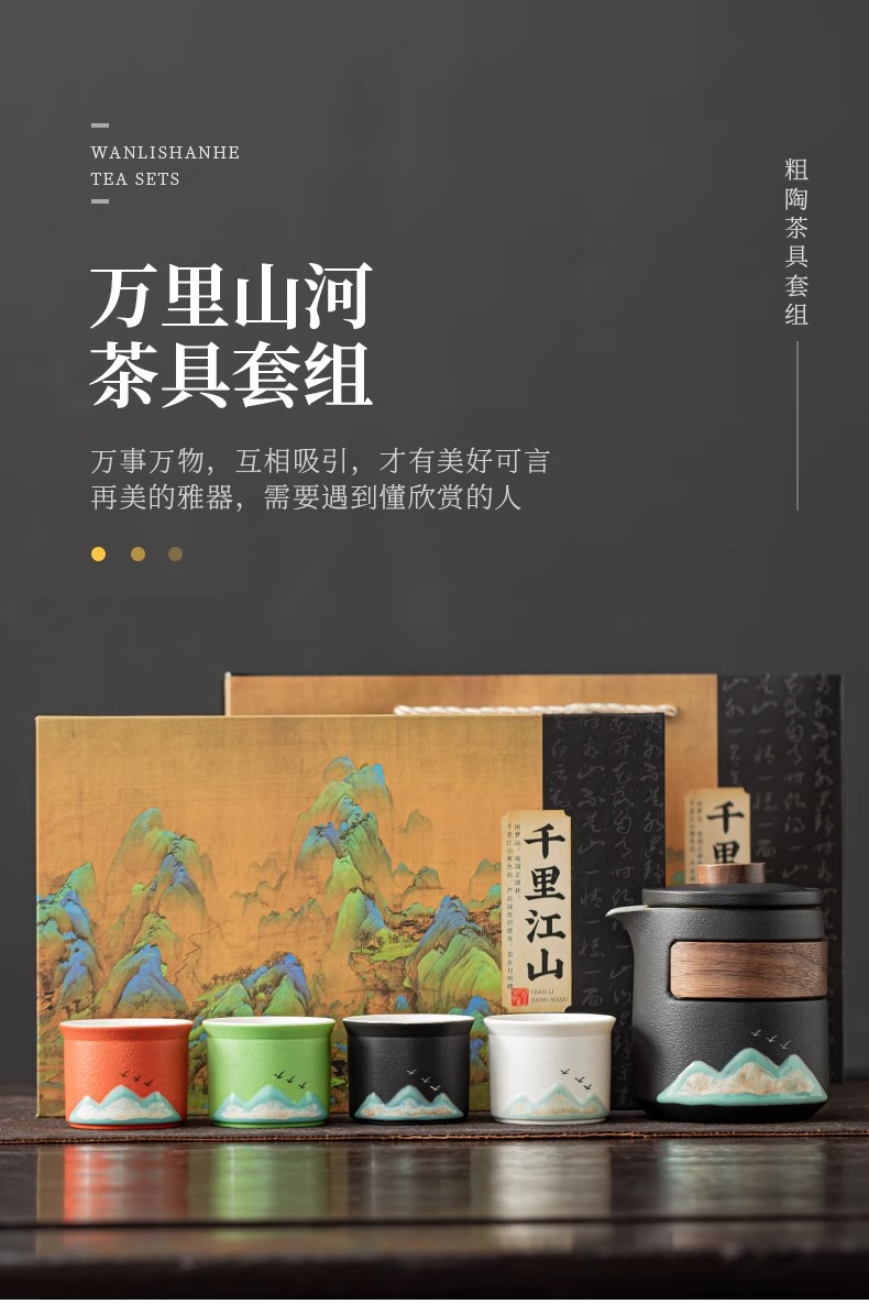 Guochao Qianli Jiangshan 주전자 익스프레스 컵 1 냄비 4 컵 여행 차 세트 야외 주전자 선물 상자 동반 선물 상자스토어 가기