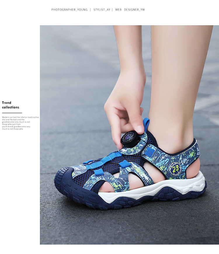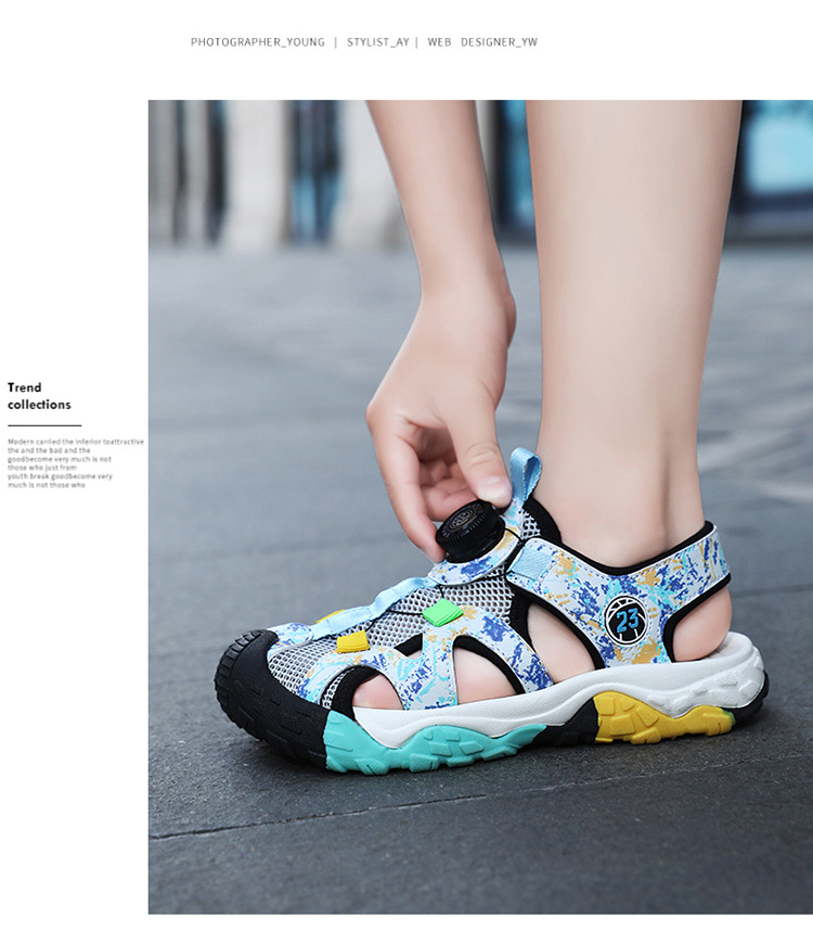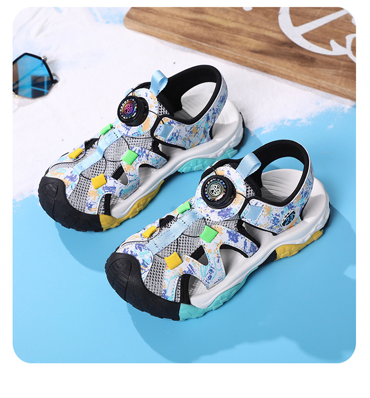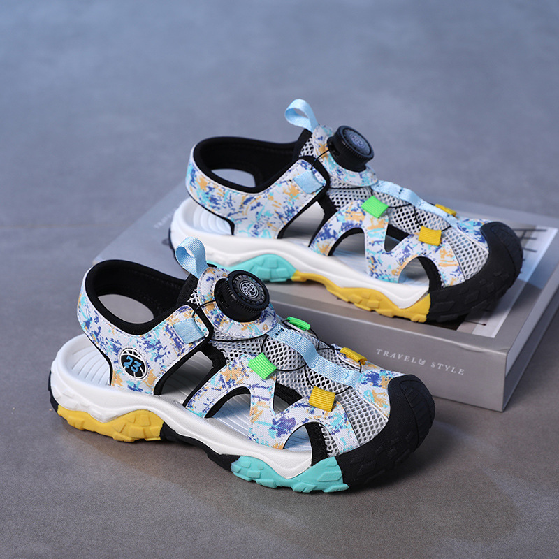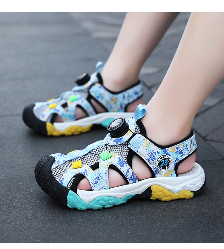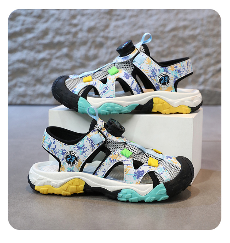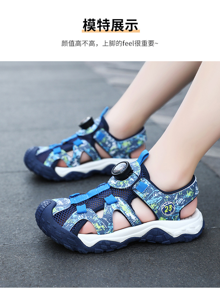어린이 스포츠 샌들 소년 2025 여름 새로운 Baotou 메쉬 통기성 중대형 어린이 해변 신발