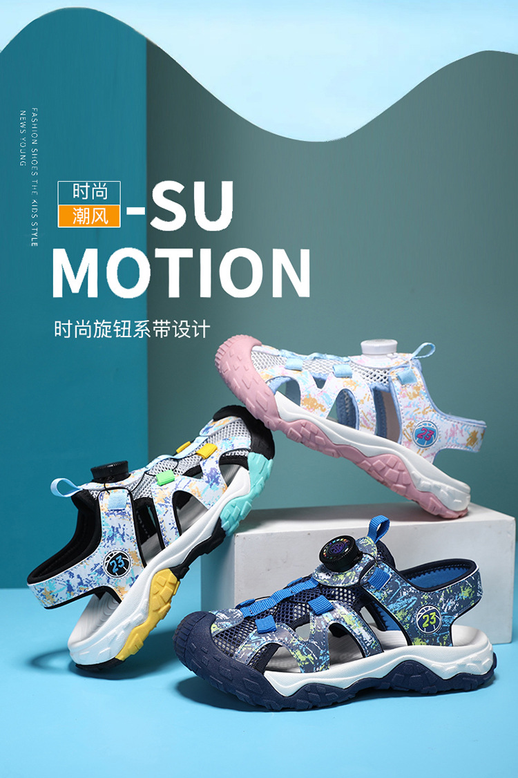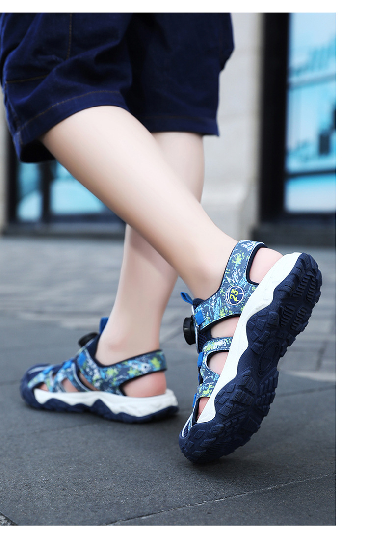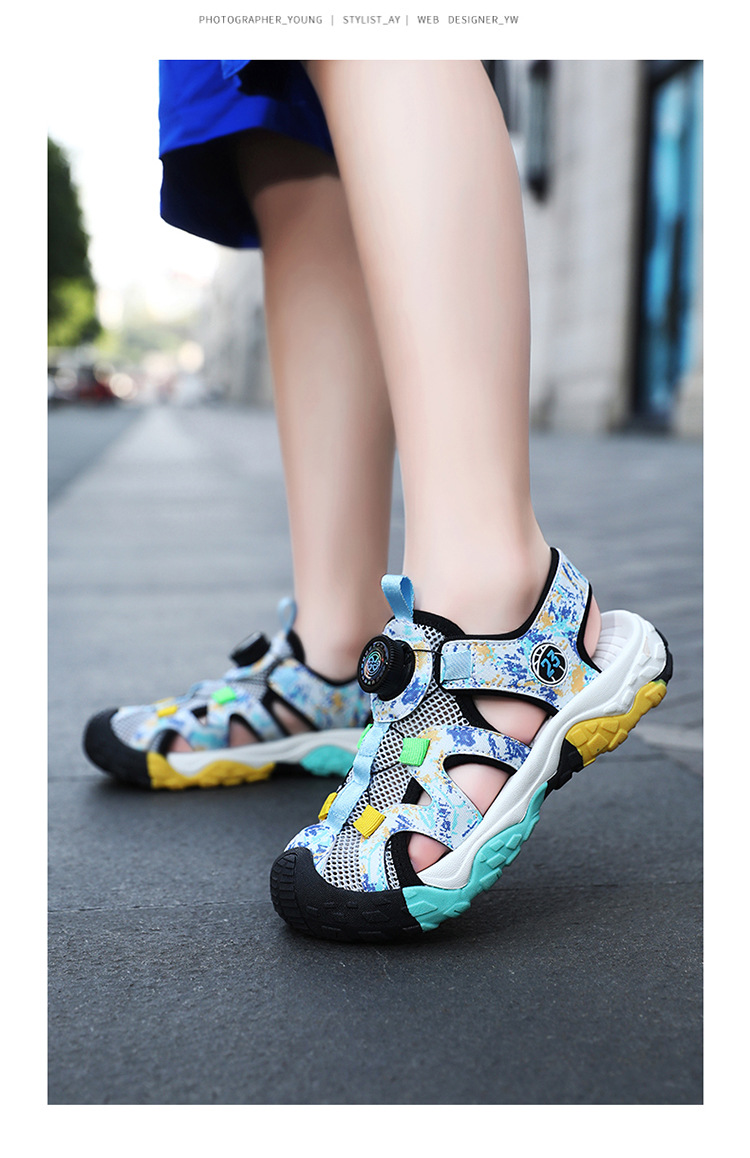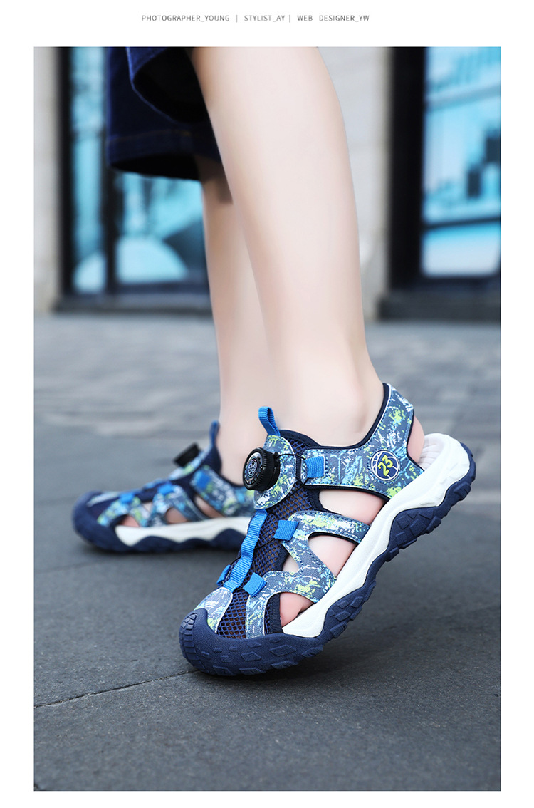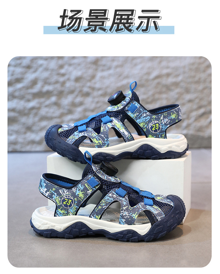 어린이 스포츠 샌들 소년 2025 여름 새로운 Baotou 메쉬 통기성 중대형 어린이 해변 신발
