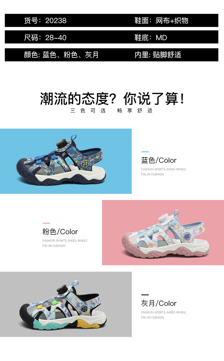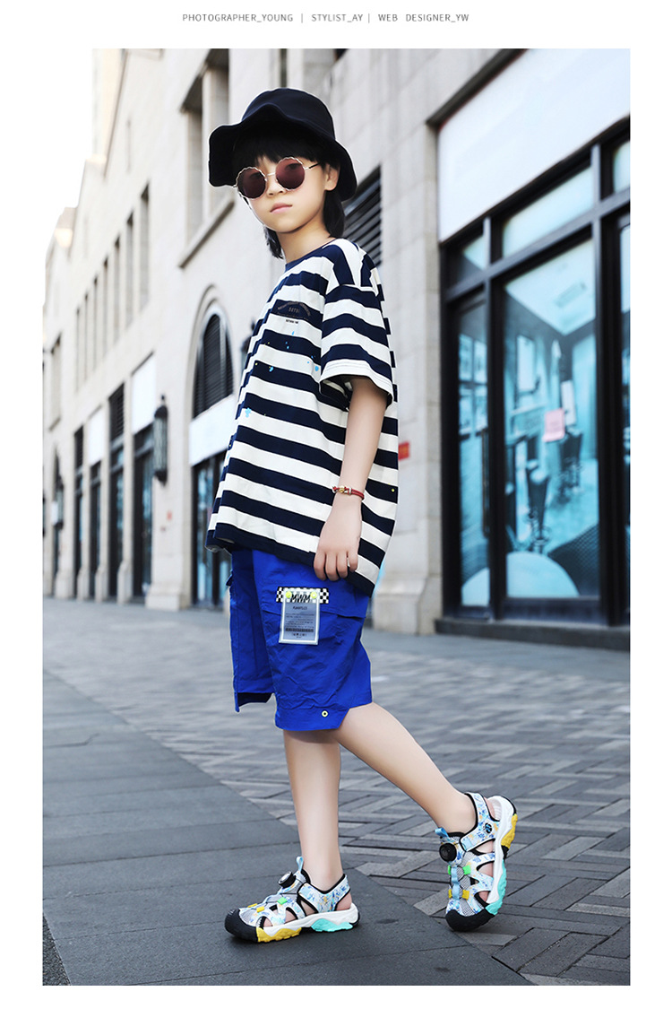 어린이 스포츠 샌들 소년 2025 여름 새로운 Baotou 메쉬 통기성 중대형 어린이 해변 신발스토어 가기