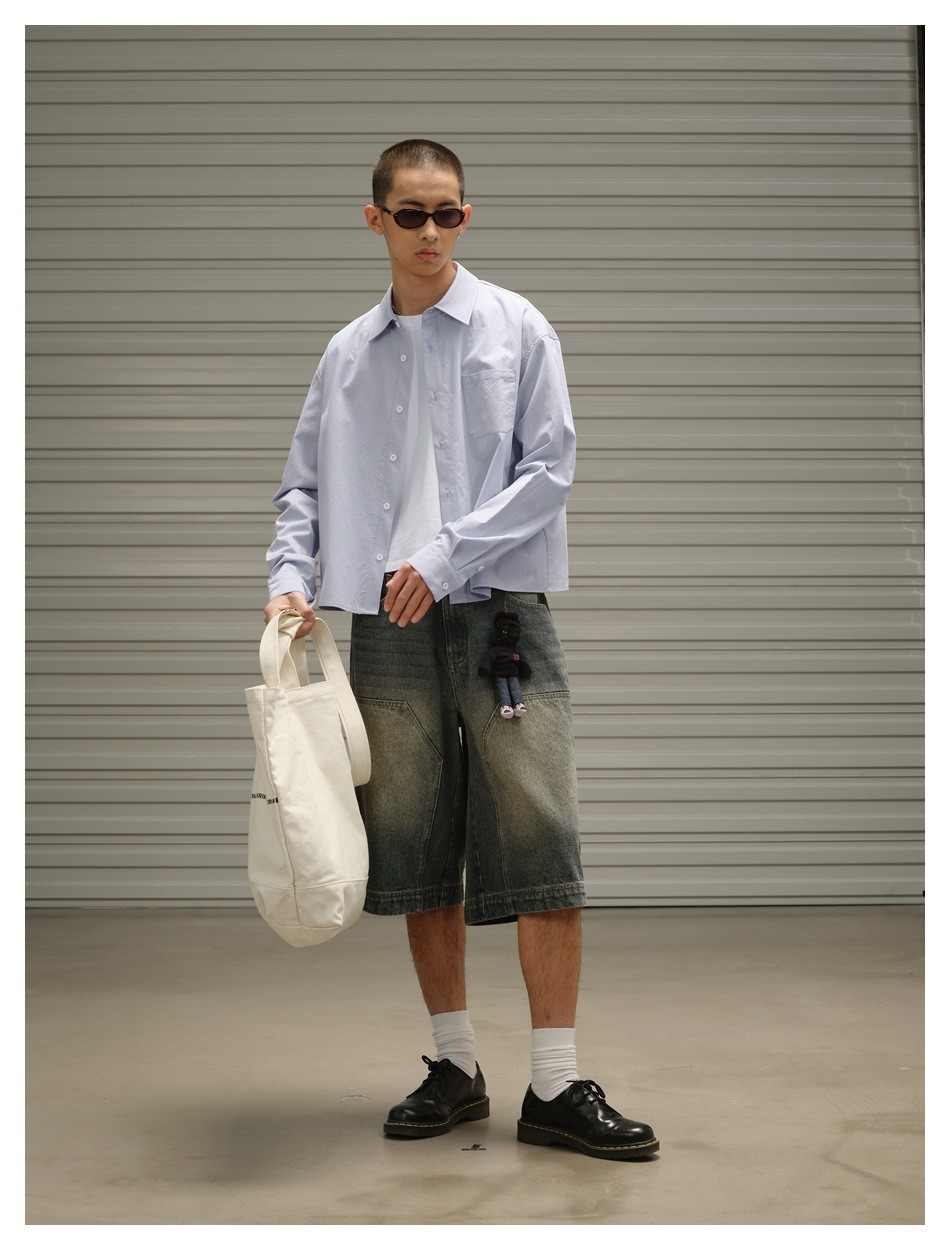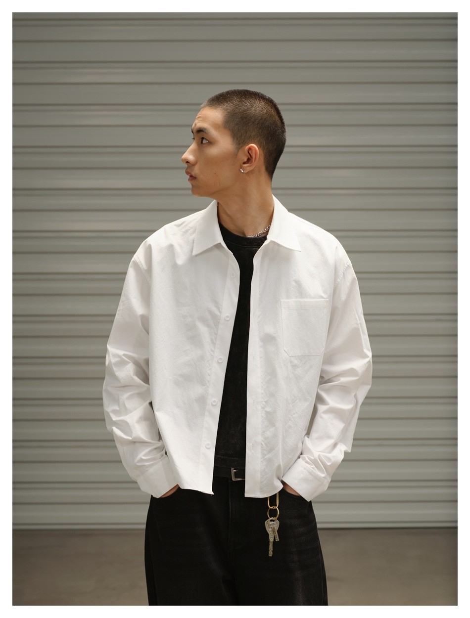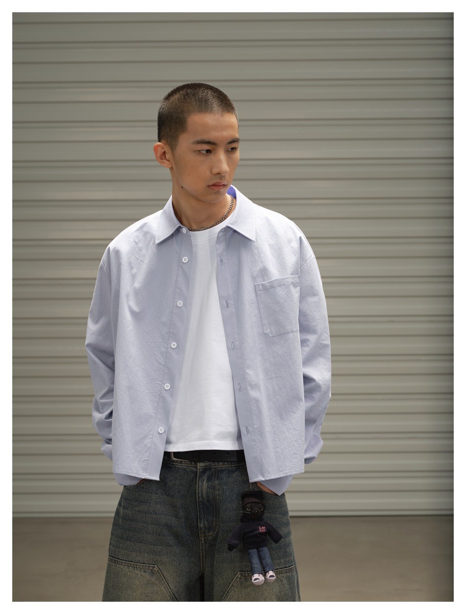 OUSWE 내셔널 트렌드 틈새 기본 아메리칸 레트로 포켓 워크 셔츠 남성용 루즈 긴팔 짧은 재킷 RC60스토어 가기