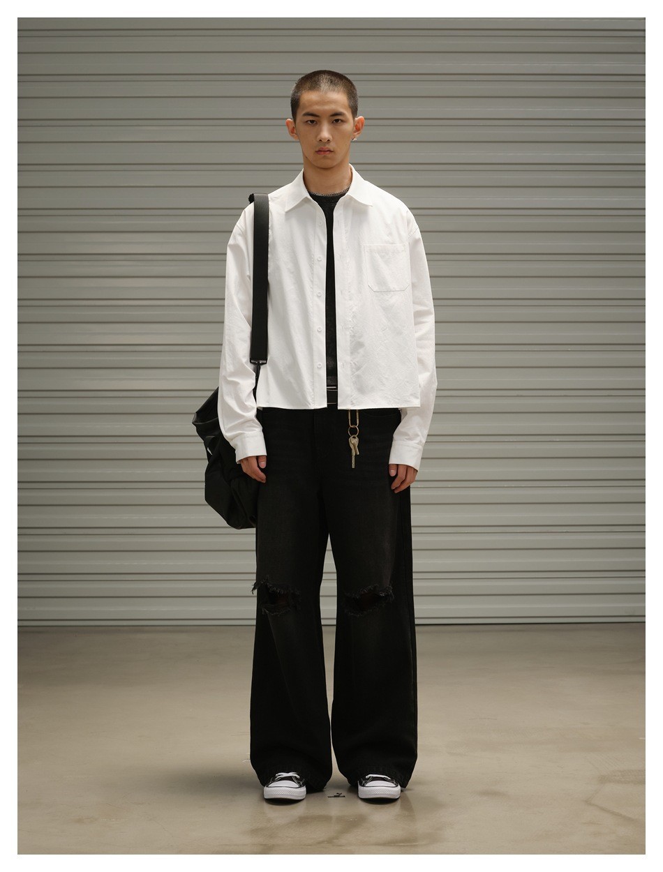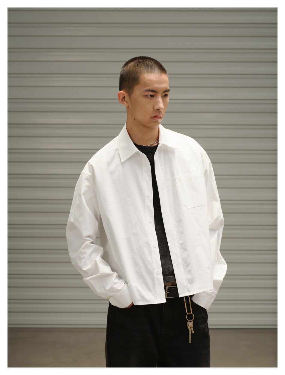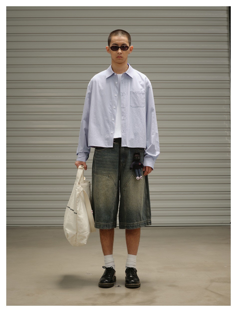 OUSWE 내셔널 트렌드 틈새 기본 아메리칸 레트로 포켓 워크 셔츠 남성용 루즈 긴팔 짧은 재킷 RC60스토어 가기