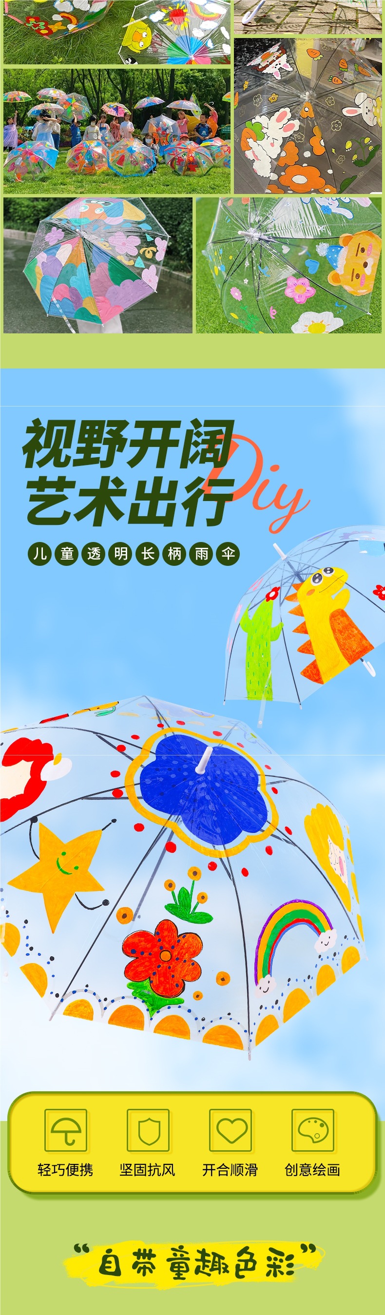 어린이 빈 그림 우산 DIY 소재 수제 그리기 우산 투명 손으로 그린 낙서 작은 우산 유치원스토어 가기