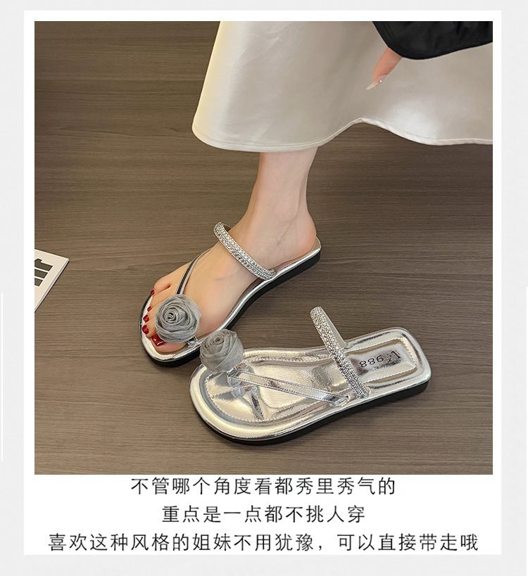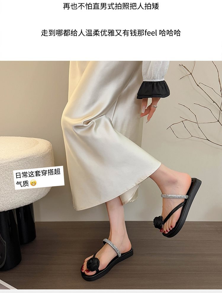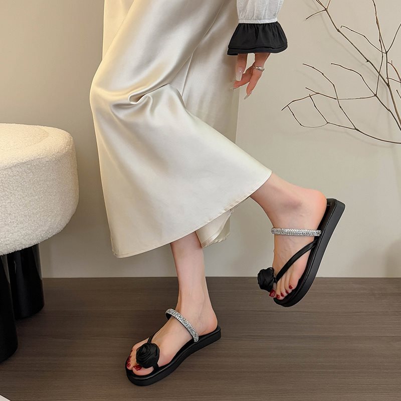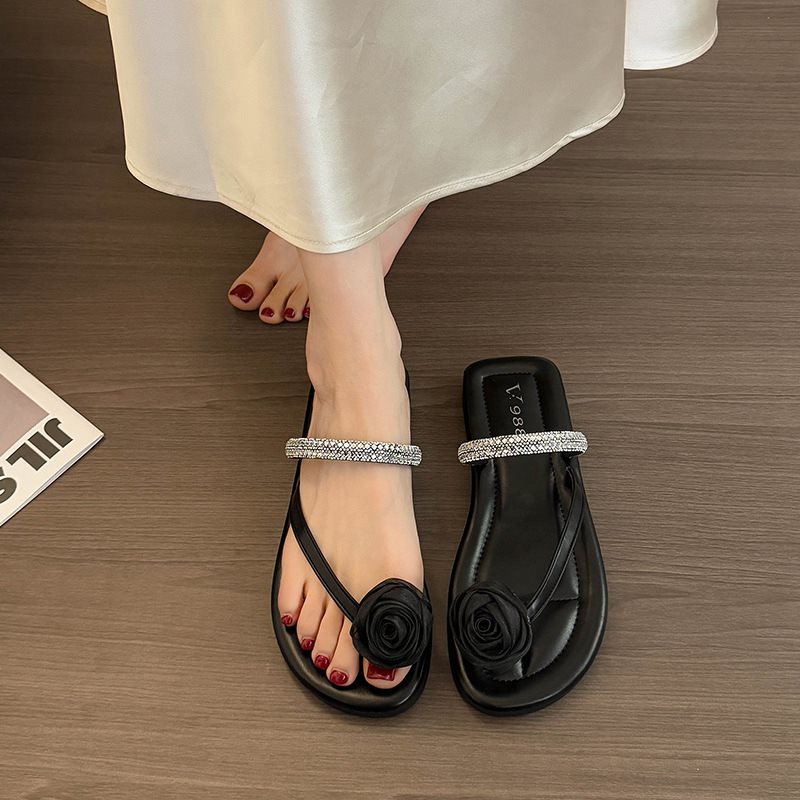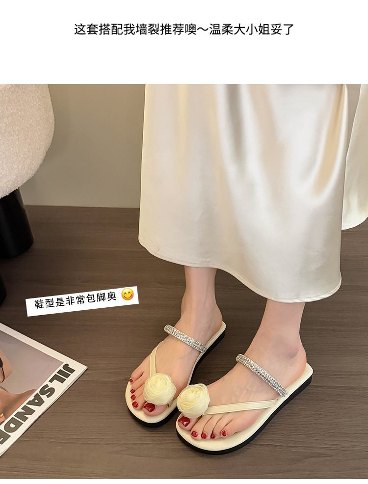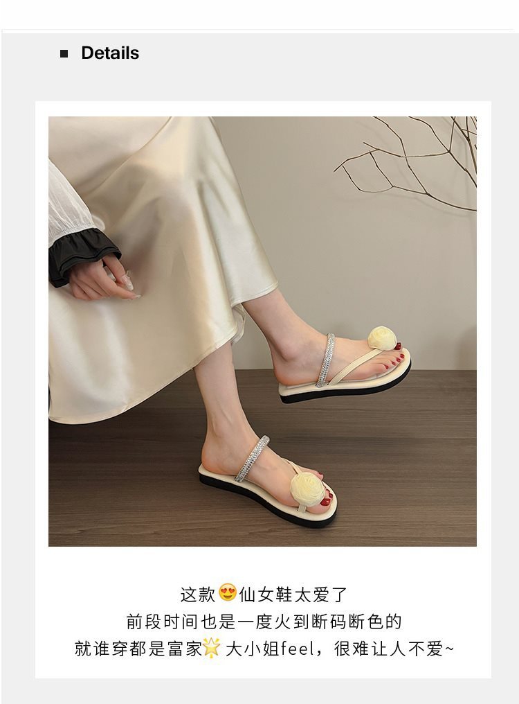 여성용 여름 아우터용 새 샌들 슬립온 스커트 샌들 및 슬리퍼, 플랫 바닥 아름다운 플립플롭 2025 페어리 스타일 다이아몬드 포함스토어 가기