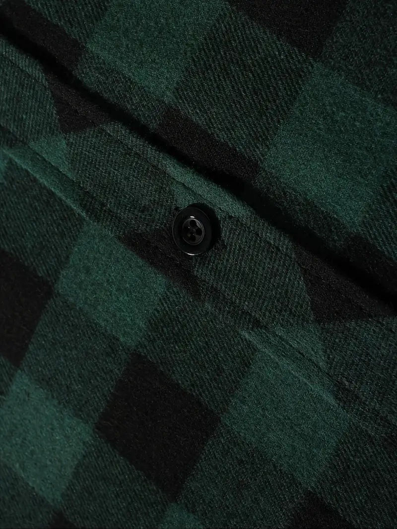 새로운 Amazon Flannel Plaid 후드 셔츠 유럽과 미국 사이즈 더블 포켓 플랩 후드 셔츠 코트 남성용스토어 가기