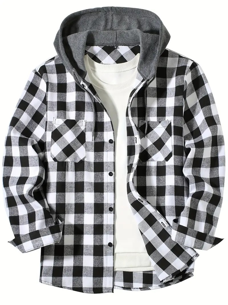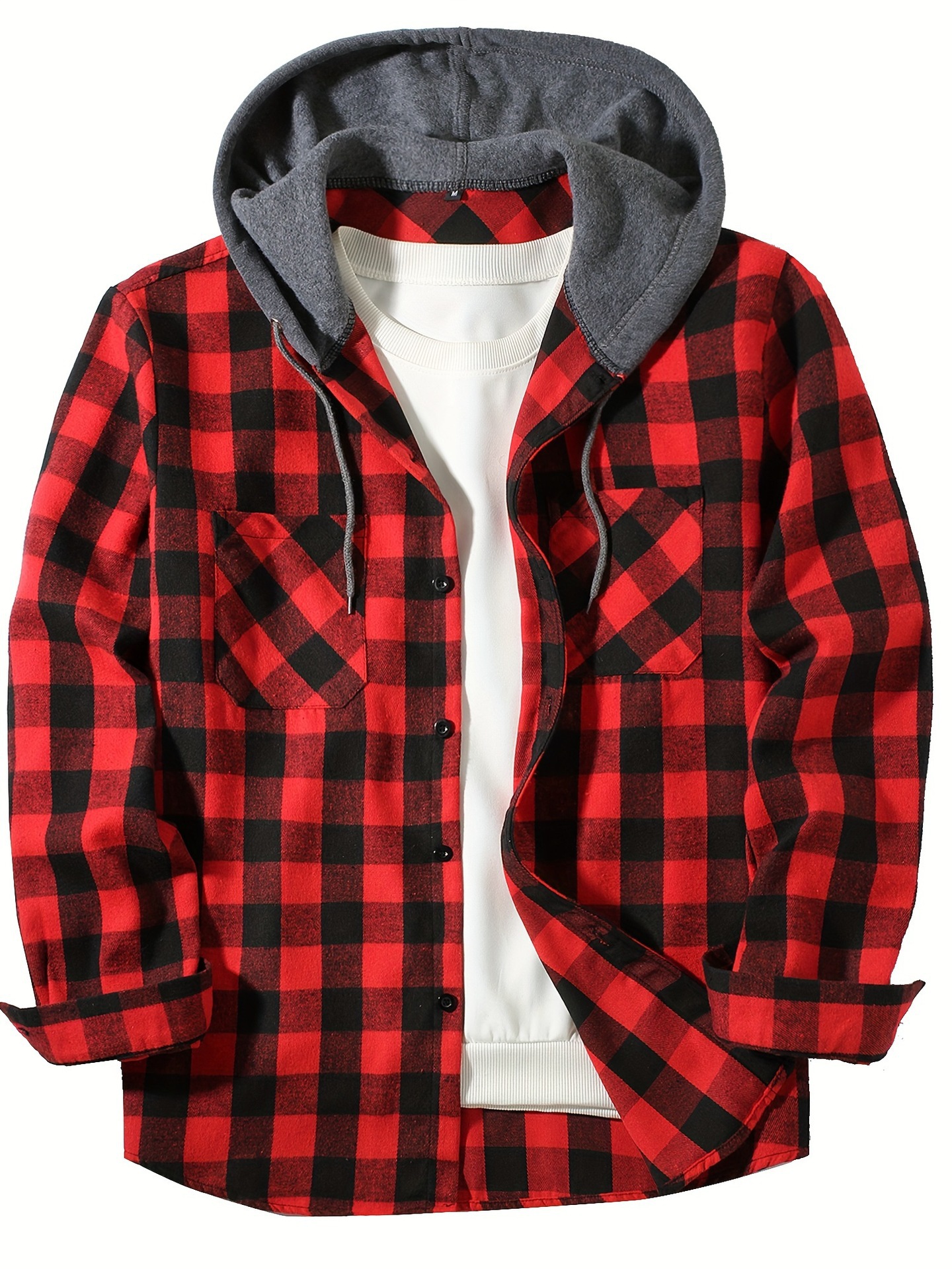 새로운 Amazon Flannel Plaid 후드 셔츠 유럽과 미국 사이즈 더블 포켓 플랩 후드 셔츠 코트 남성용