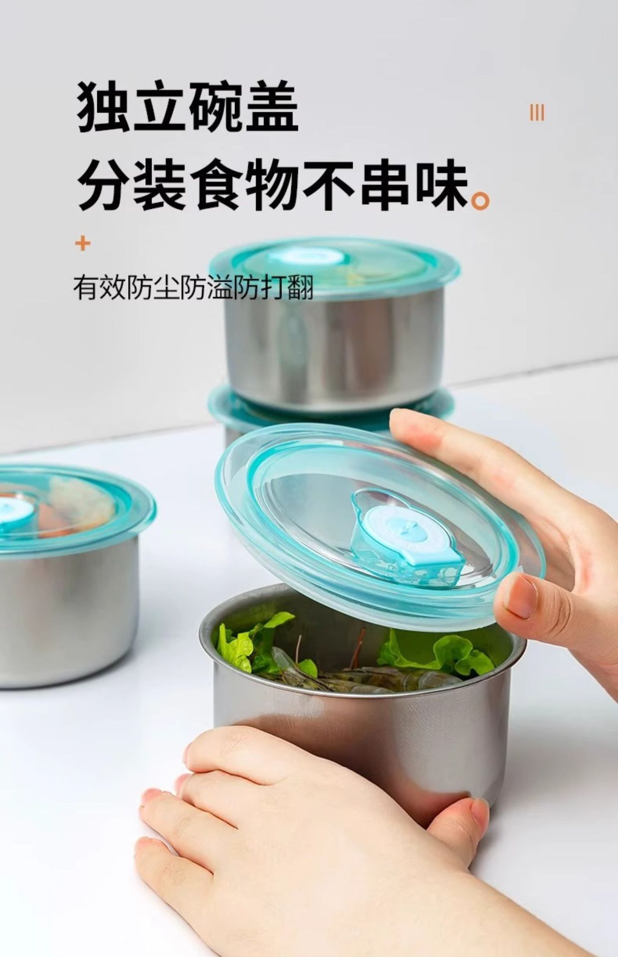 • 밀봉 뚜껑이 있는 스테인리스 스틸 보관 그릇(1개)