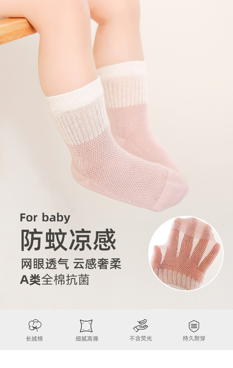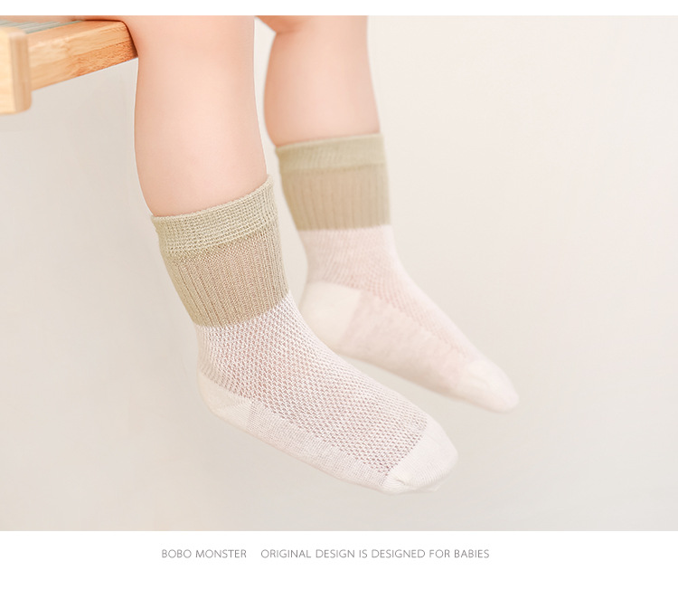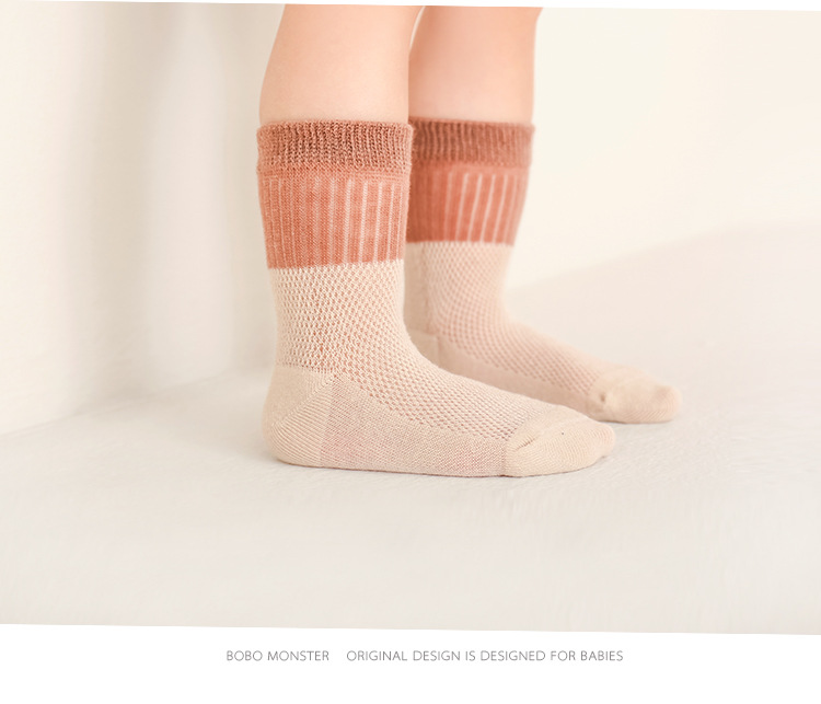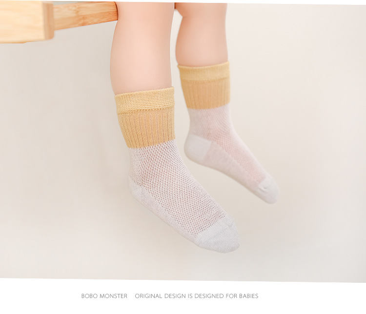 소년과 소녀를위한 아기 여름 양말 단색 메쉬 통기성 얇은면 양말 신생아 아기 뼈없는 중간 튜브 양말스토어 가기