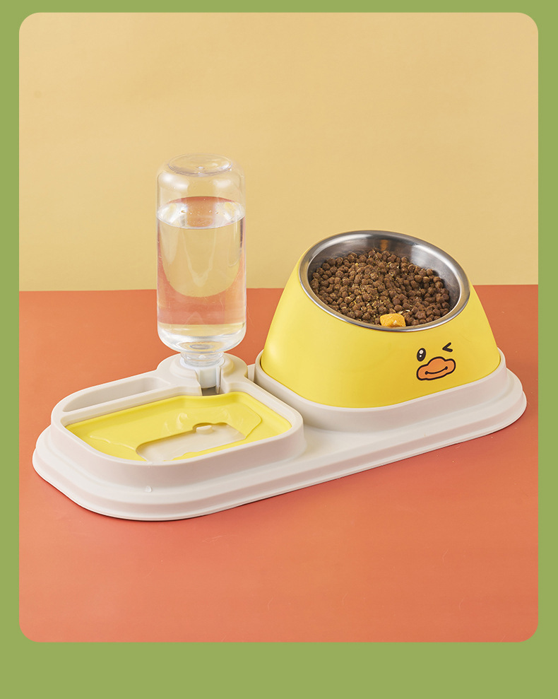 • 강철 그릇을 들고 있는 작은 노란 오리 [먹이주기 + 자동 물 저장]