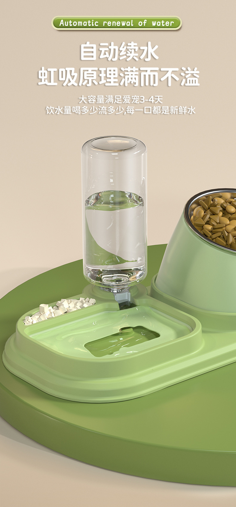 • 잔디 녹색 강철 그릇 [급수 + 자동 물 저장]