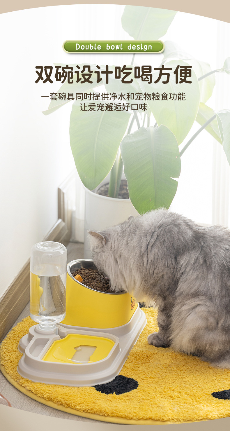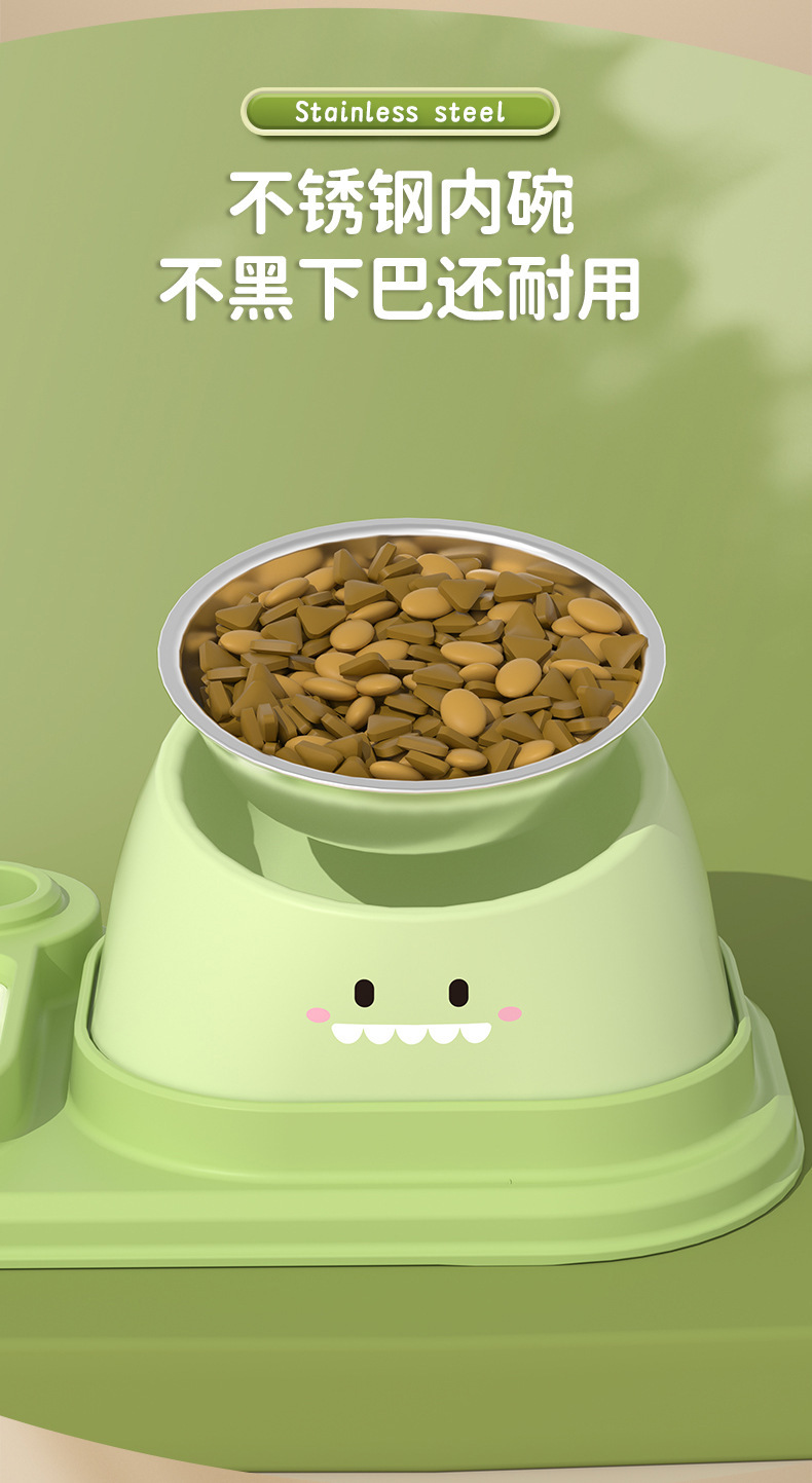 만화 더블 그릇 자동 공급기 고양이 그릇 개밥 그릇 스테인레스 스틸 경사 목 보호대 2-in-1 애완 동물 그릇스토어 가기