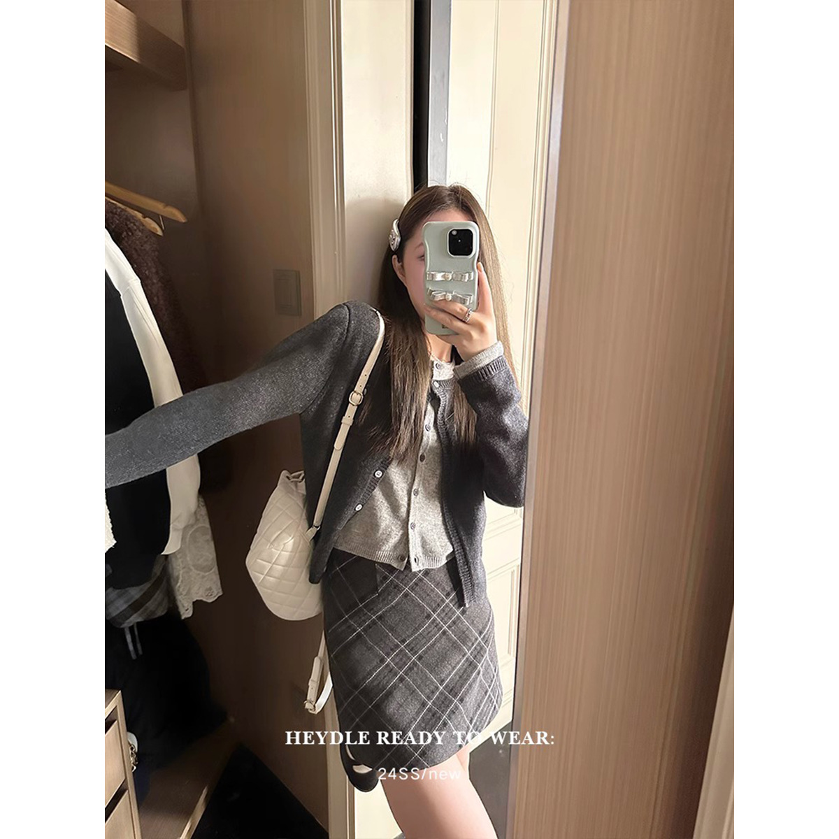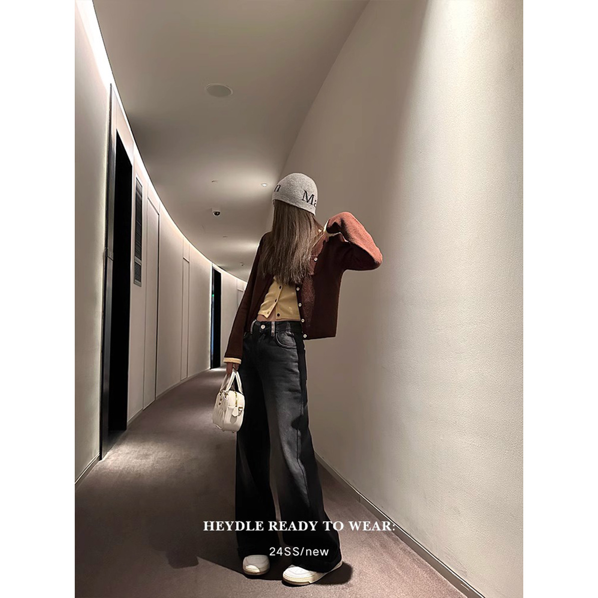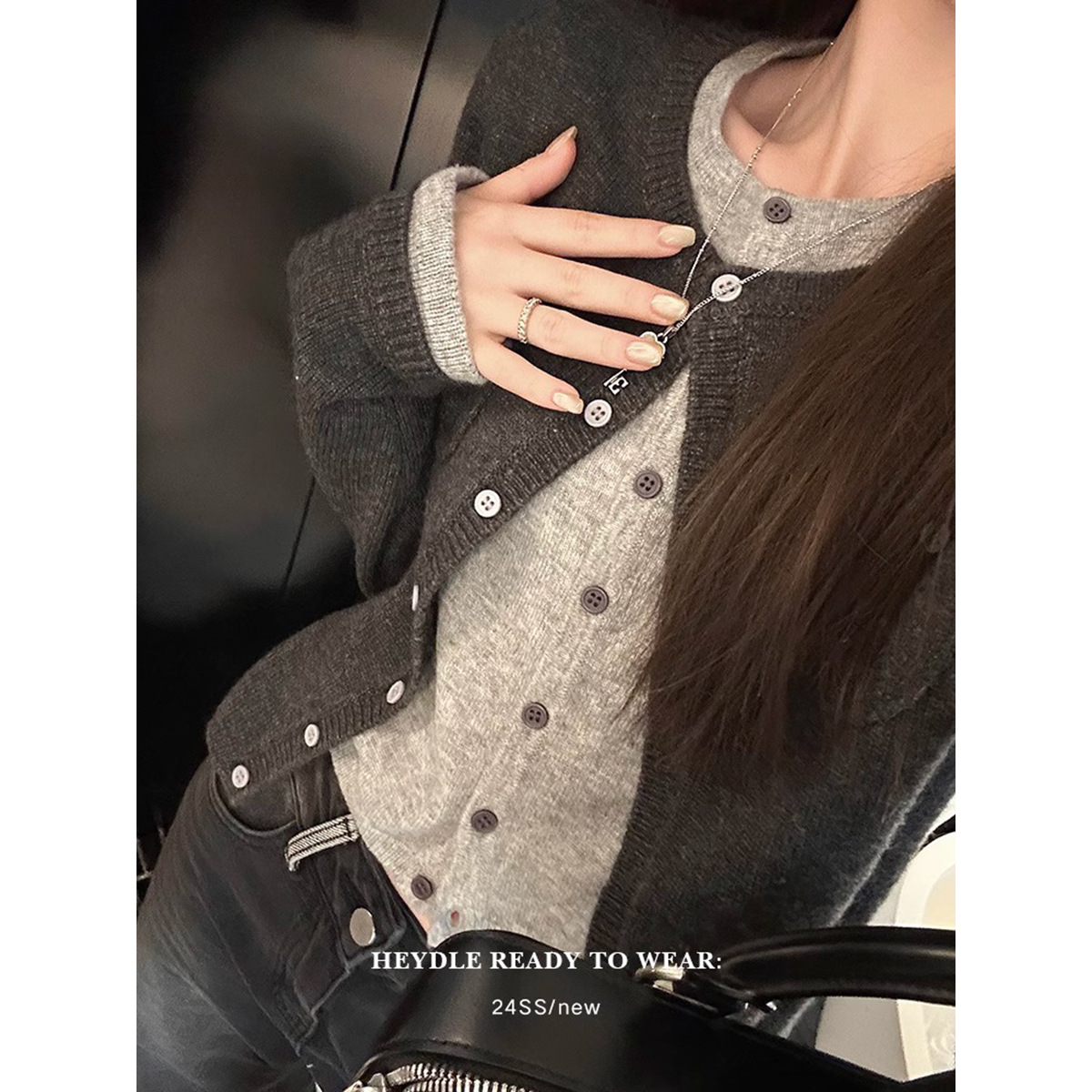 889 # 검은콩 험덩 반 고흐 인상* 대비색 가짜 투피스 니트 가디건 여성 스플라이스 그레이 스웨터 탑