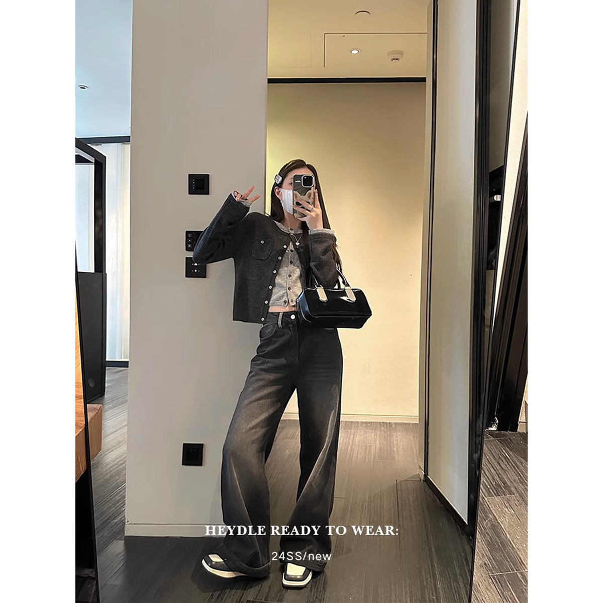 889 # 검은콩 험덩 반 고흐 인상* 대비색 가짜 투피스 니트 가디건 여성 스플라이스 그레이 스웨터 탑스토어 가기