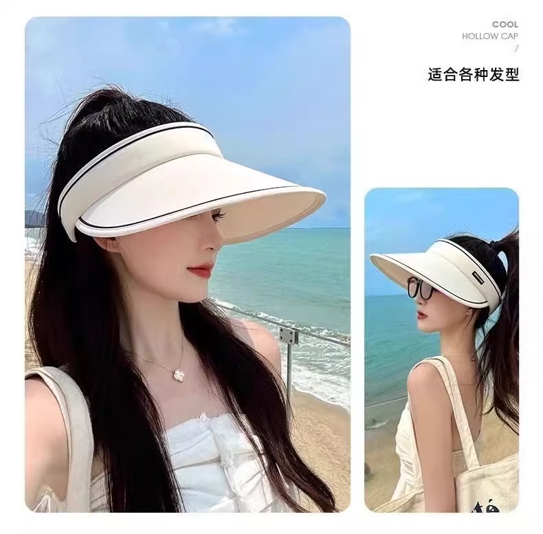여성용 흰색 플라스틱 대형 챙 태양 모자, 자외선 방지 빈 탑 태양 모자, 얼굴을 덮는 태양 모자, 여름 접이식 모자스토어 가기