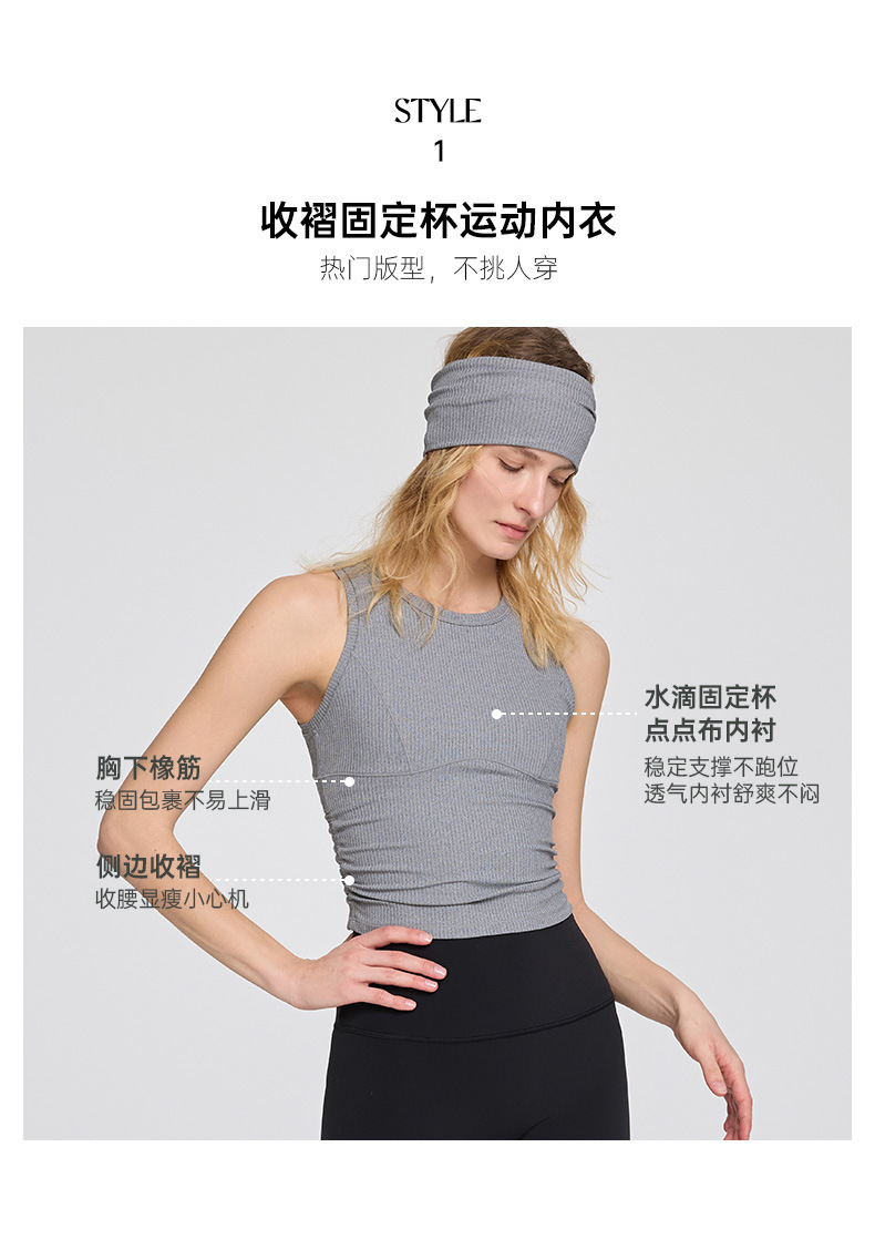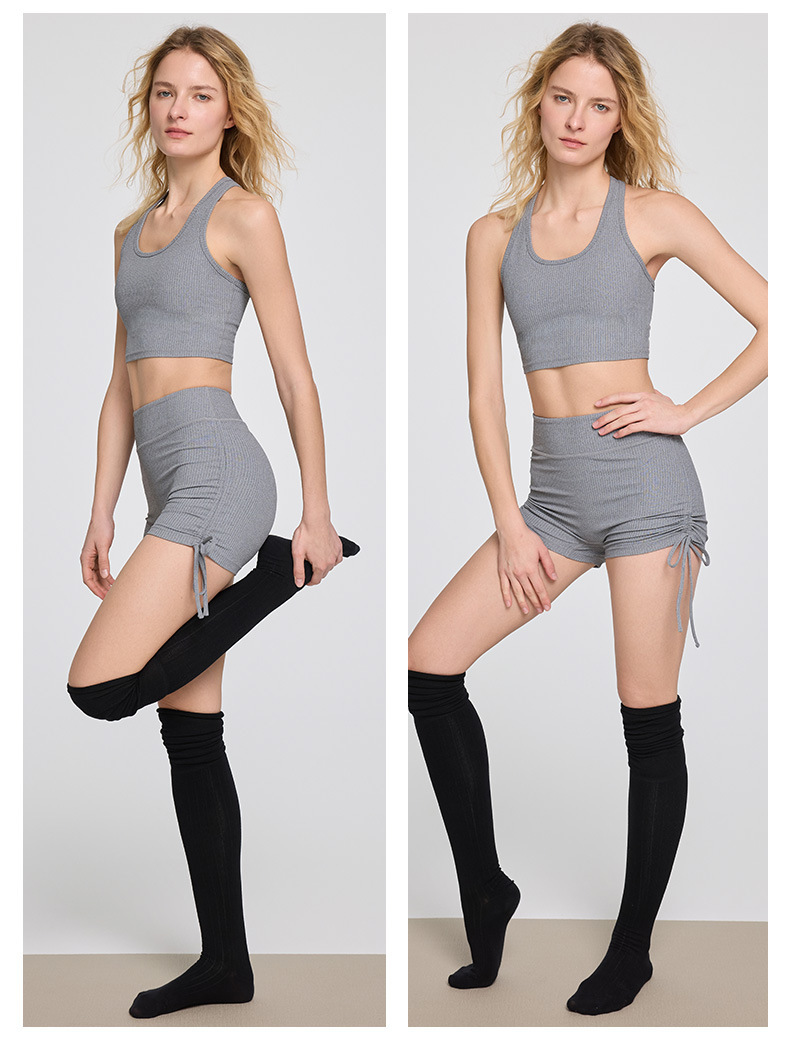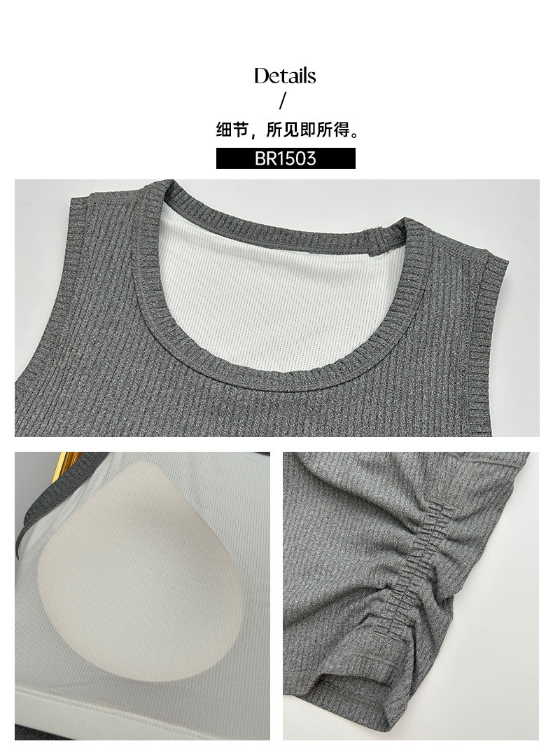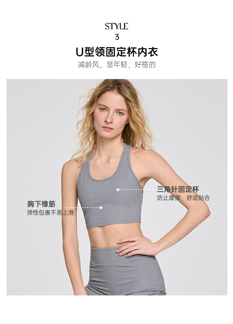 Yuyou 새로운 요가 의류 여성 대마 회색 질감 스포츠 속옷 넓은 어깨 스트랩 고정 컵 꽉 피트니스 의류 요가 바지
