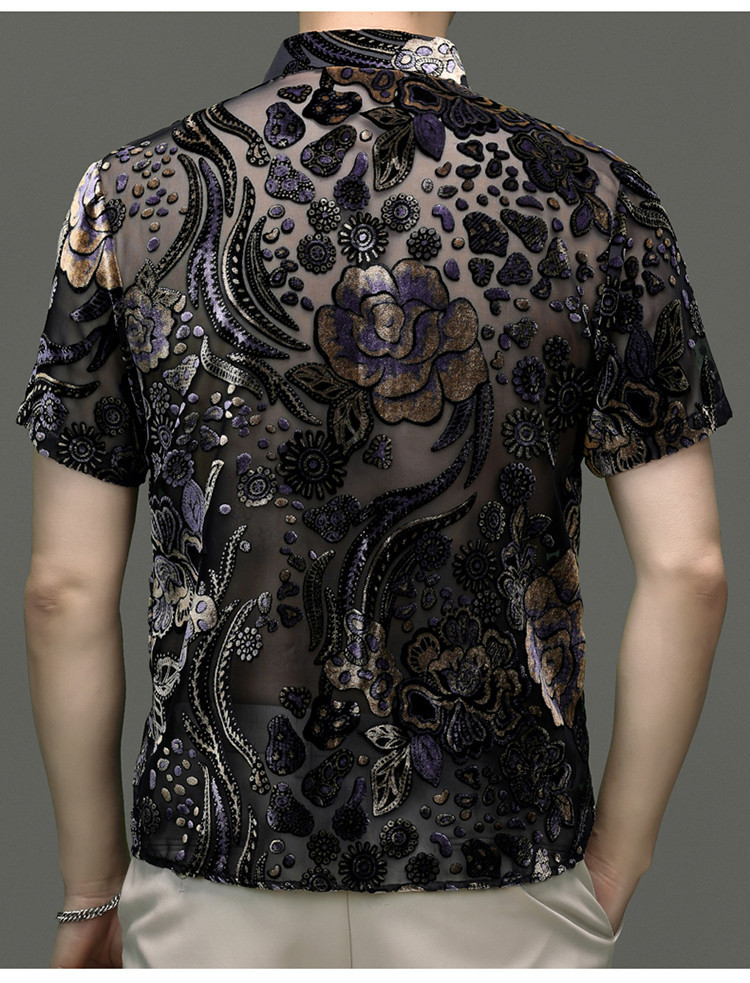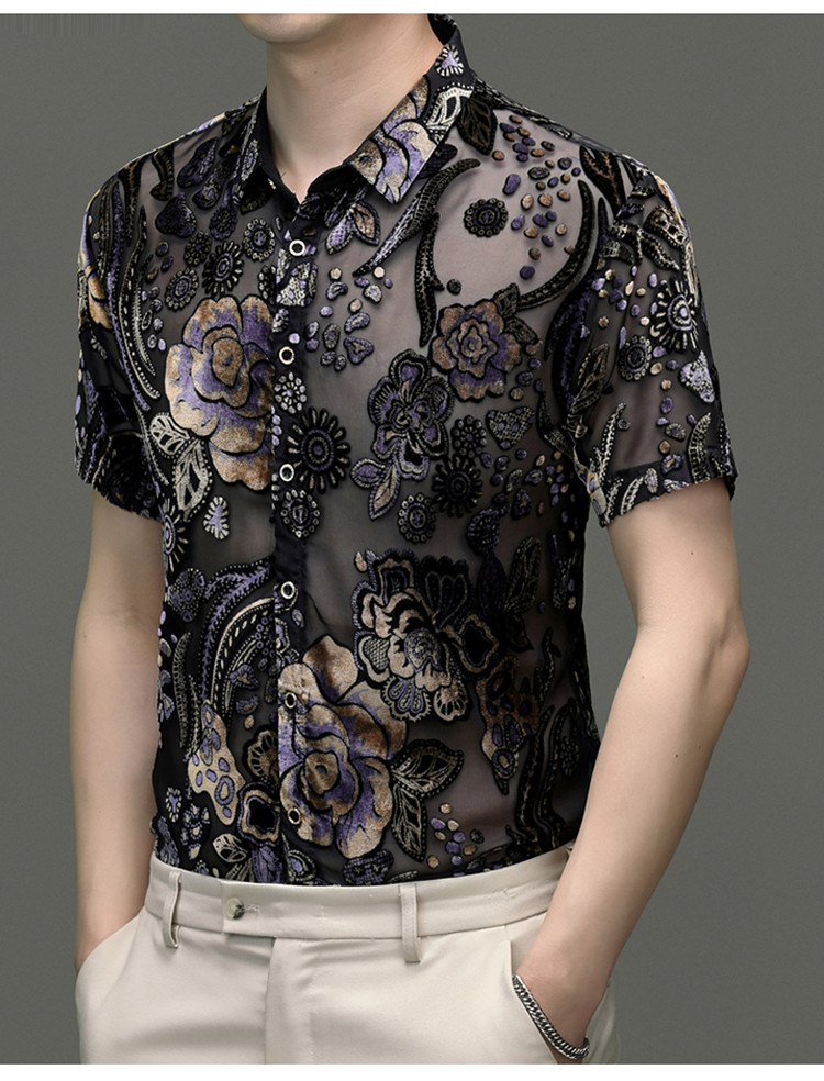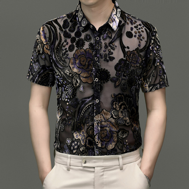 대외 무역 고급 중공 반팔 셔츠 캐주얼 남성 셔츠 여름 프린트 반팔 남성 캐주얼 남성 비즈니스스토어 가기