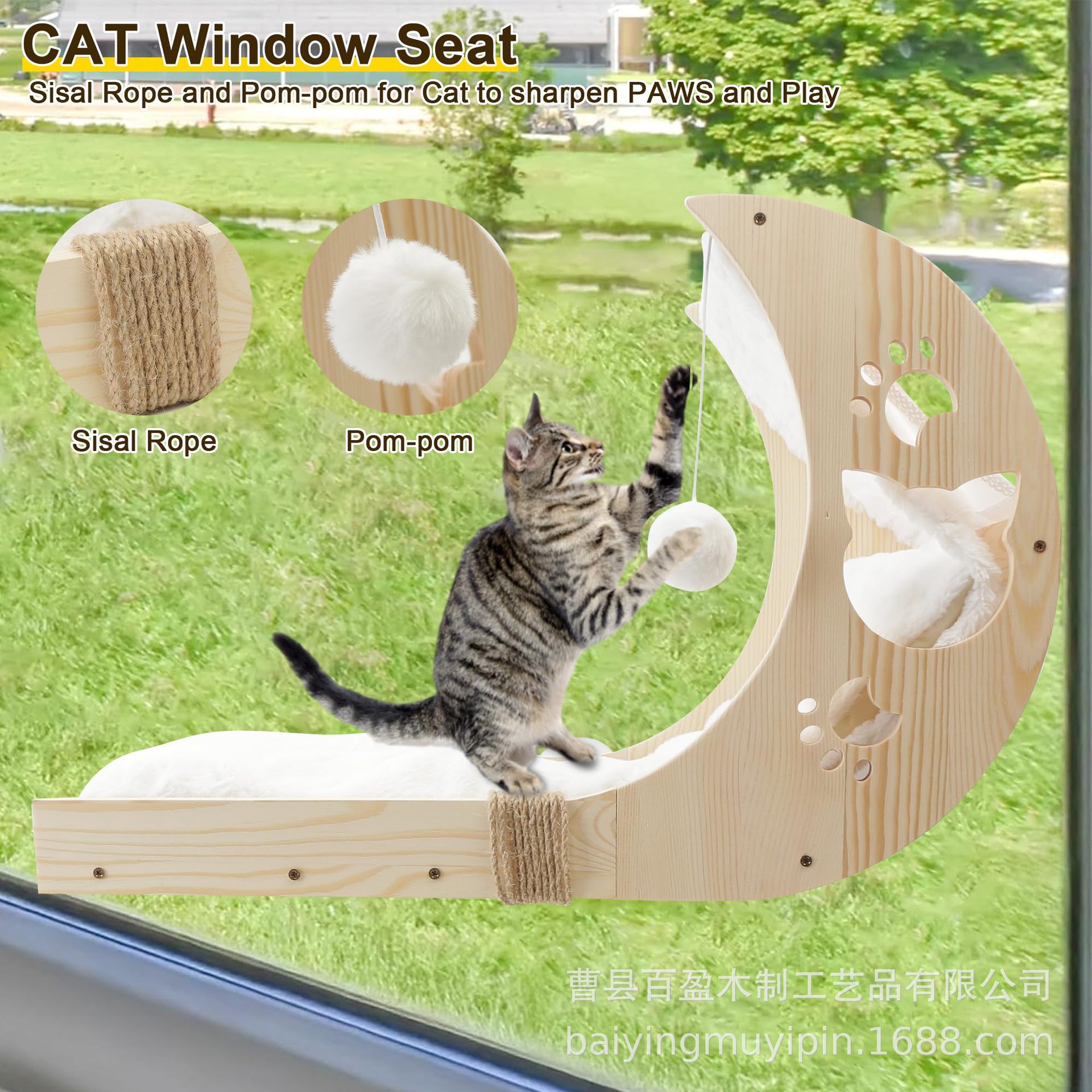 국경 간 목재 고양이 해먹 벽걸이 고양이 점프 플랫폼 애완 동물 둥지 애완 동물 둥지 고양이 재미 스틱 클라이밍 프레임 흡입 컵 고양이 서식지스토어 가기