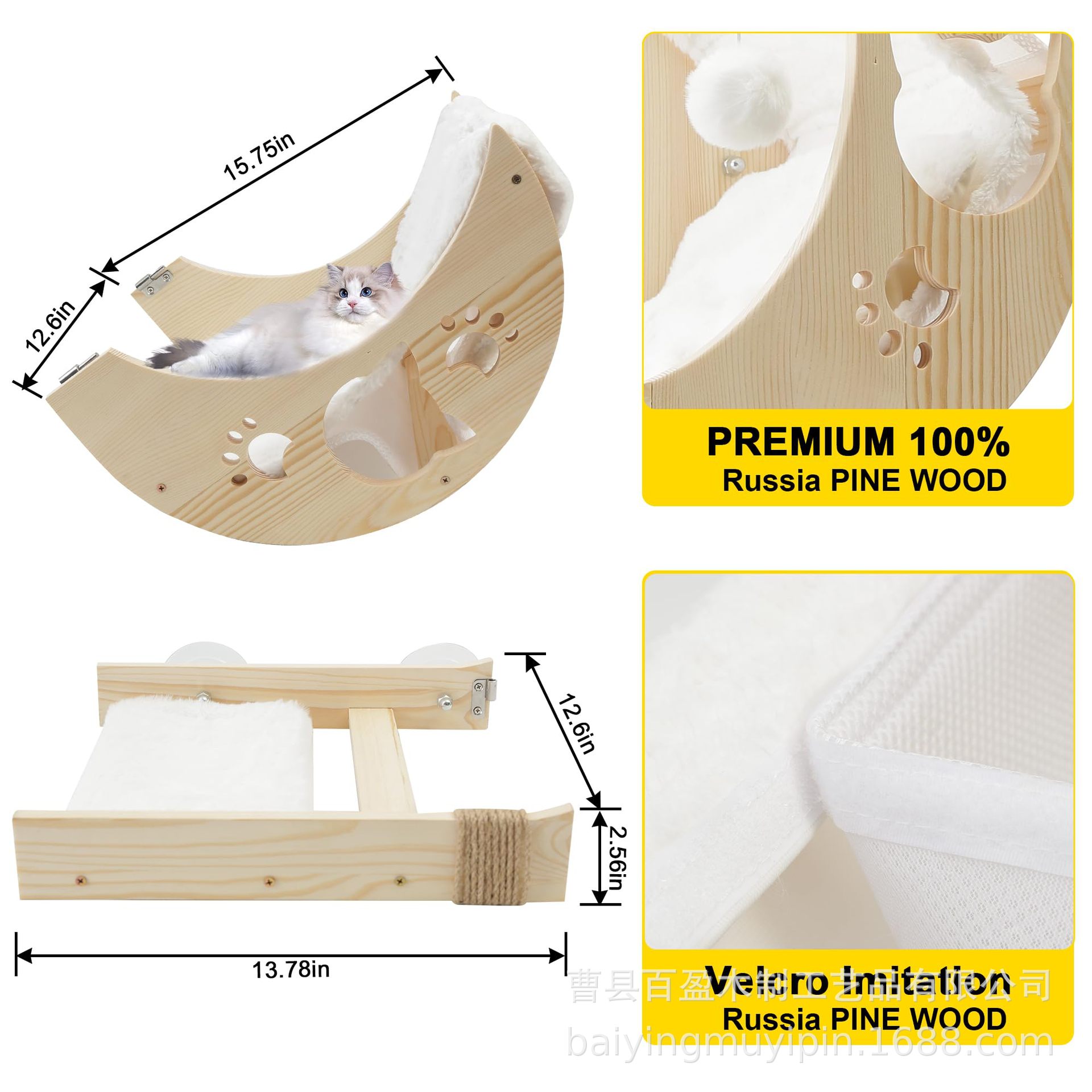 국경 간 목재 고양이 해먹 벽걸이 고양이 점프 플랫폼 애완 동물 둥지 애완 동물 둥지 고양이 재미 스틱 클라이밍 프레임 흡입 컵 고양이 서식지