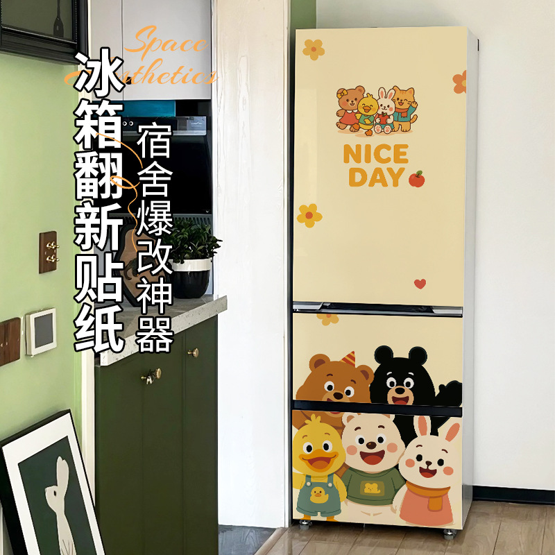 단일 도어 냉장고 스티커 전체 창의적인 이동식 자체 접착식 이중 도어 스티커 장식 개조 스티커스토어 가기