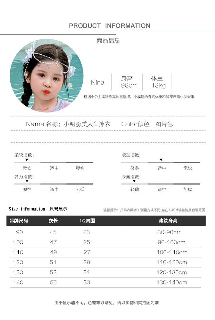 인어 어린이 수영복 소녀 유행 날개 공주 원피스 스커트 수영복 긴팔 자외선 차단 수영복 여름