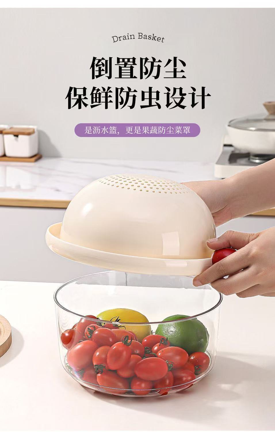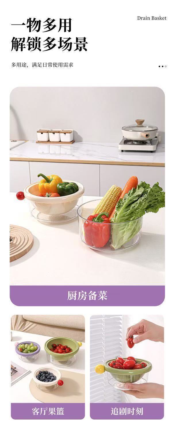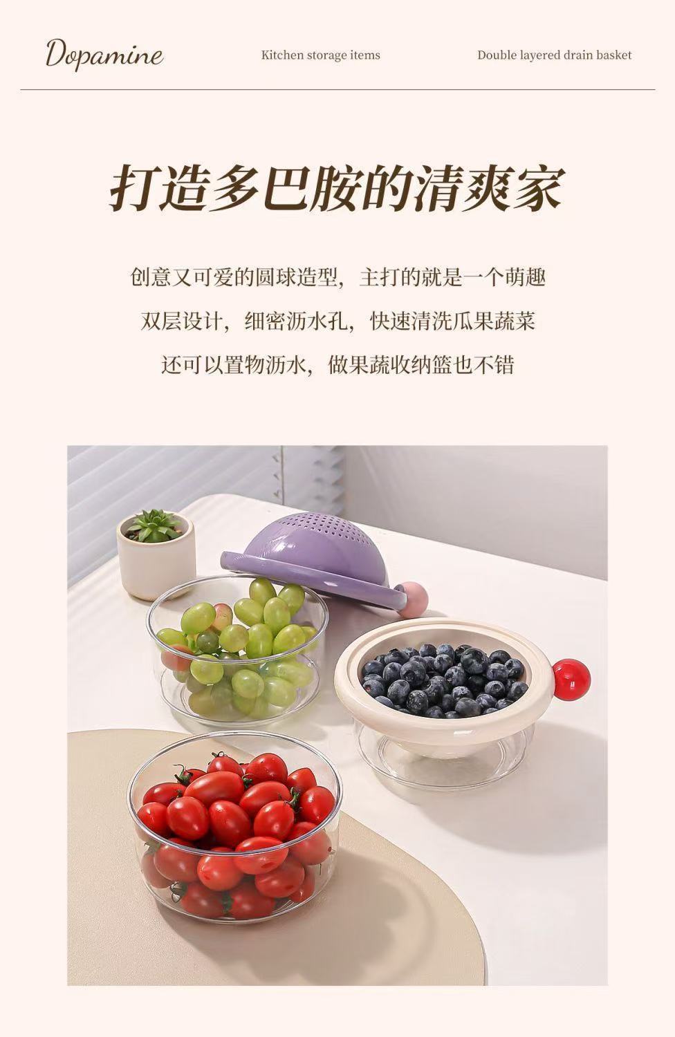 더블 레이어 도파민 배수 바구니 가정용 귀여운 과일 바구니 청소 및 물 여과 2-in-1 두꺼운 과일 접시 야채 세척 바구니