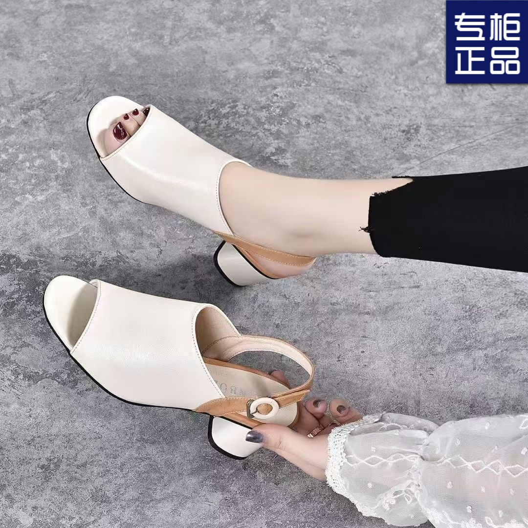 여성용 피쉬 입 컬러 블록 백 레이어 버클 샌들 2025 새로운 겉옷 유럽과 미국의 이베이 두꺼운 굽 샌들 도매스토어 가기