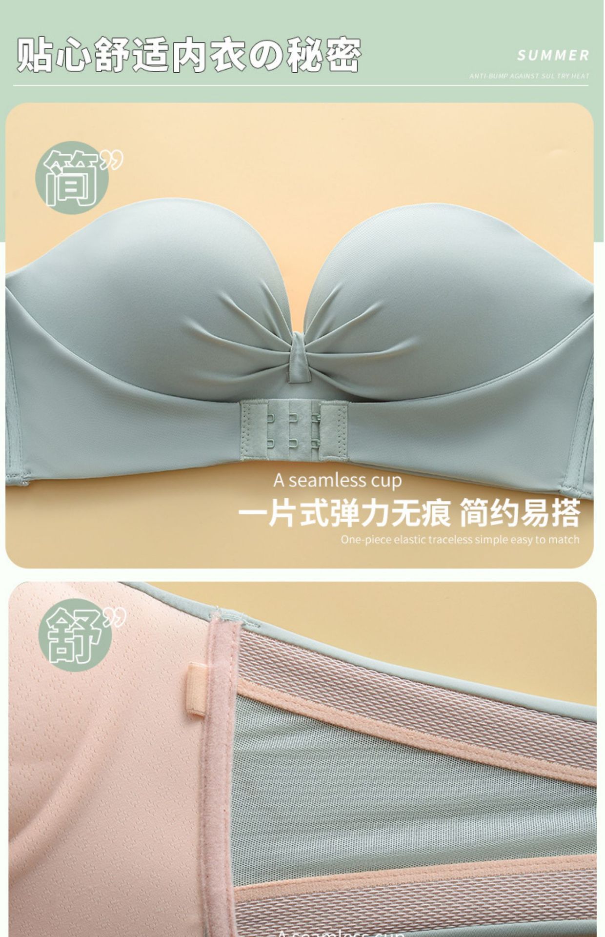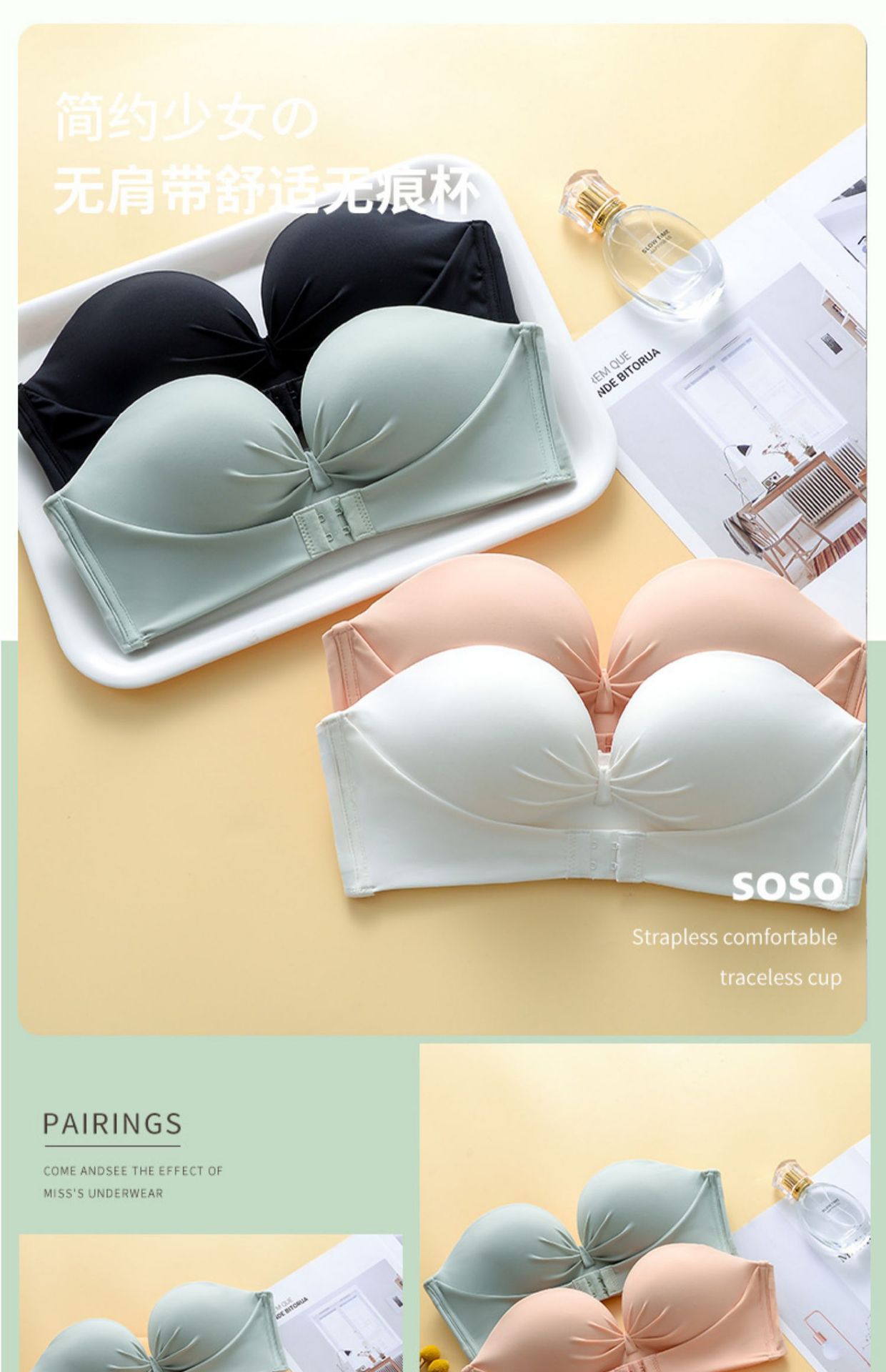 오리지널 샹베이라 스트랩리스 미끄럼 방지 인비저블 브라, 작은 가슴을 더 커 보이게 하는 푸쉬업 팜컵 통기성 브라스토어 가기