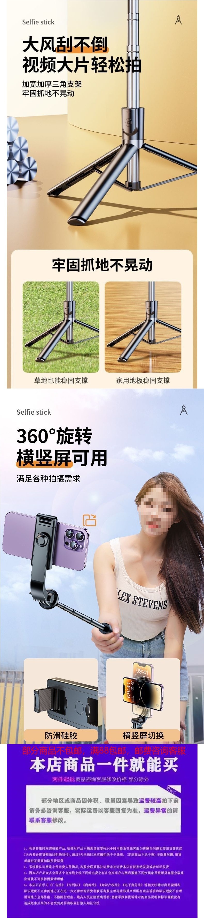 블루투스 셀카 스틱 삼각대 다기능 셀카 라이브 여행 휴대 전화 스틱 짧은 비디오 장비 유니버설스토어 가기