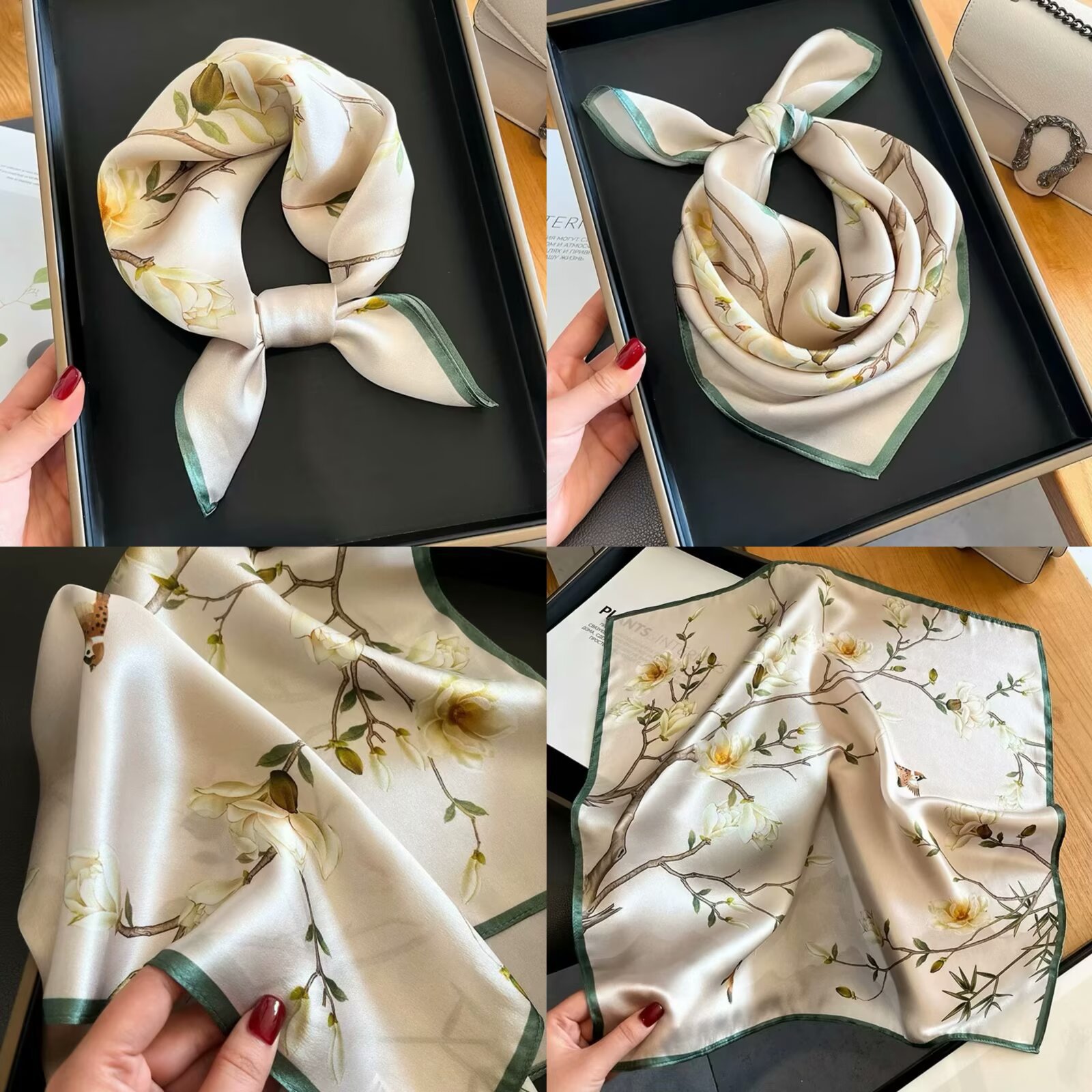 70 신형 실크 새틴 모조 실크 작은 사각형 스카프 여성용 고급 전문 다용도 한국 새틴 작은 스카프