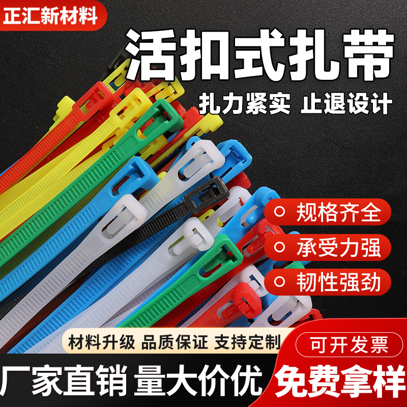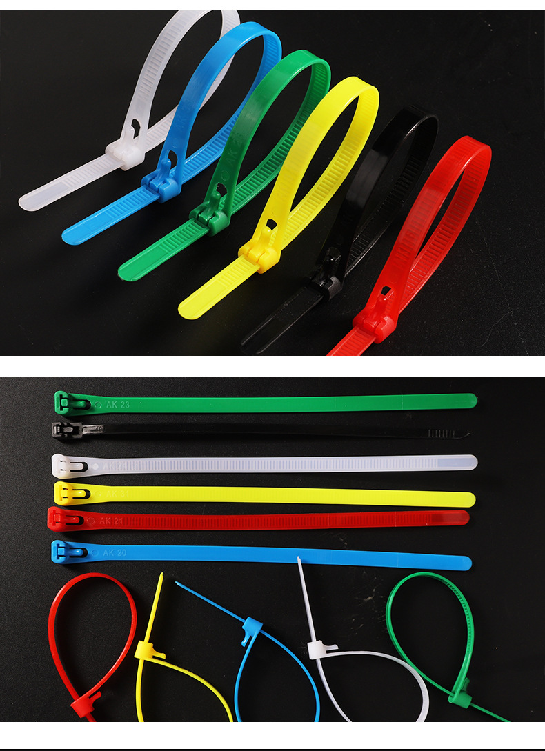 탈착식 나일론 케이블 타이 플라스틱 포장 흑백 색상 탈착식 재사용 가능한 케이블 타이