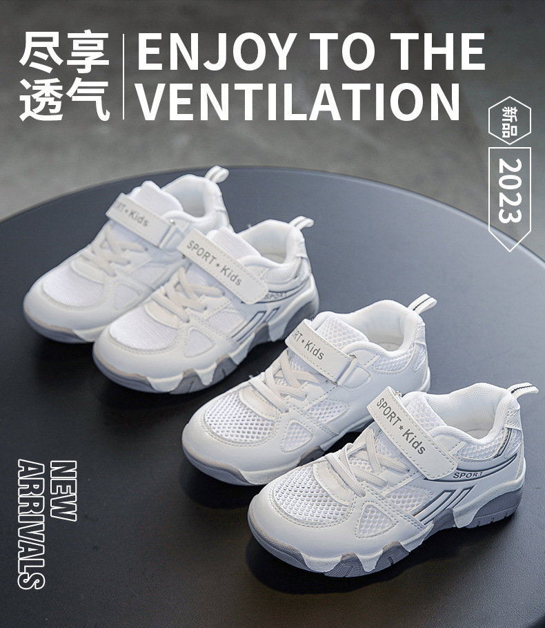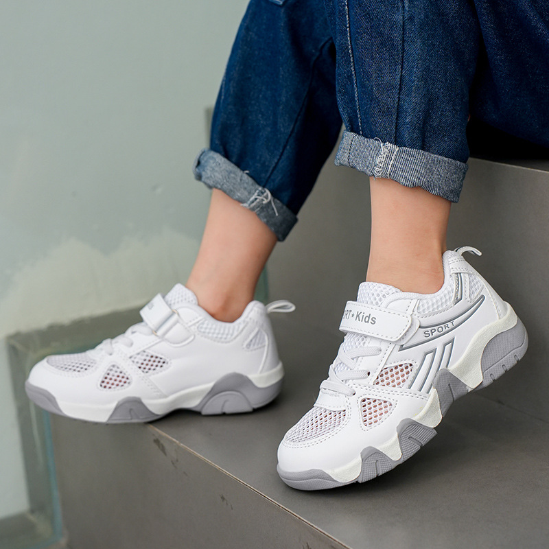 968 공장 직접 공급 어린이 신발 도매 메쉬 스포츠 신발 크로스 보더 통기성 어린이 메쉬 신발 소년 캠퍼스 흰색 신발스토어 가기