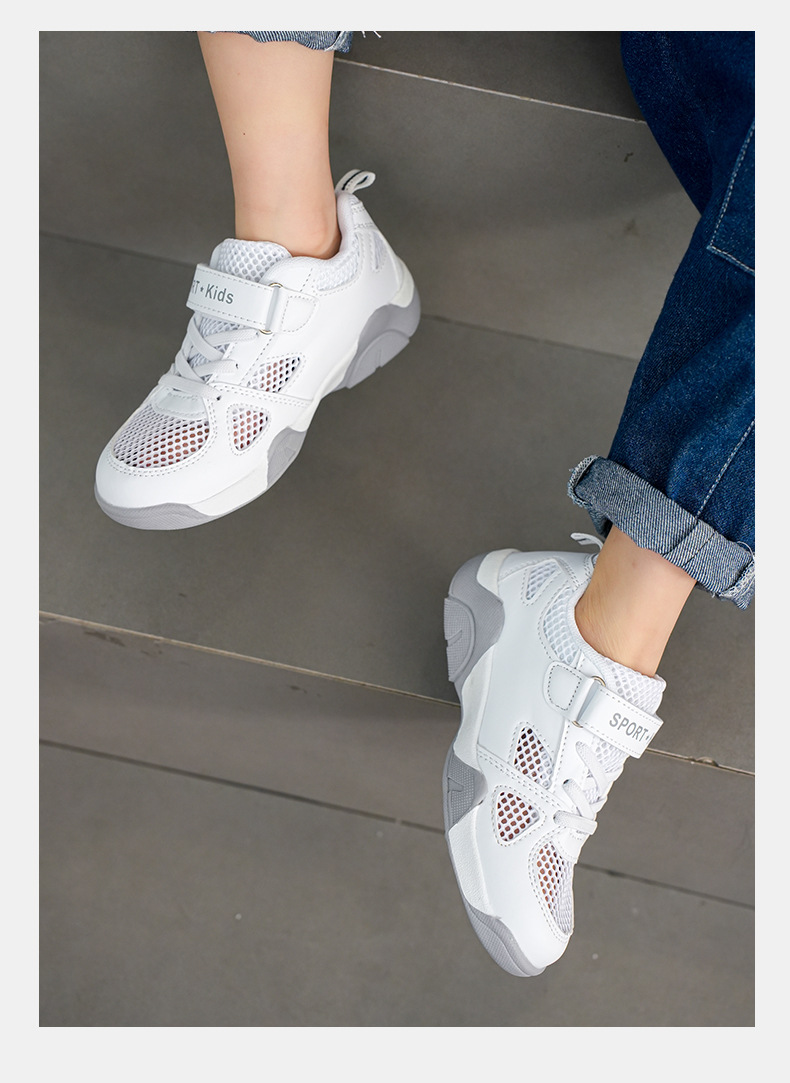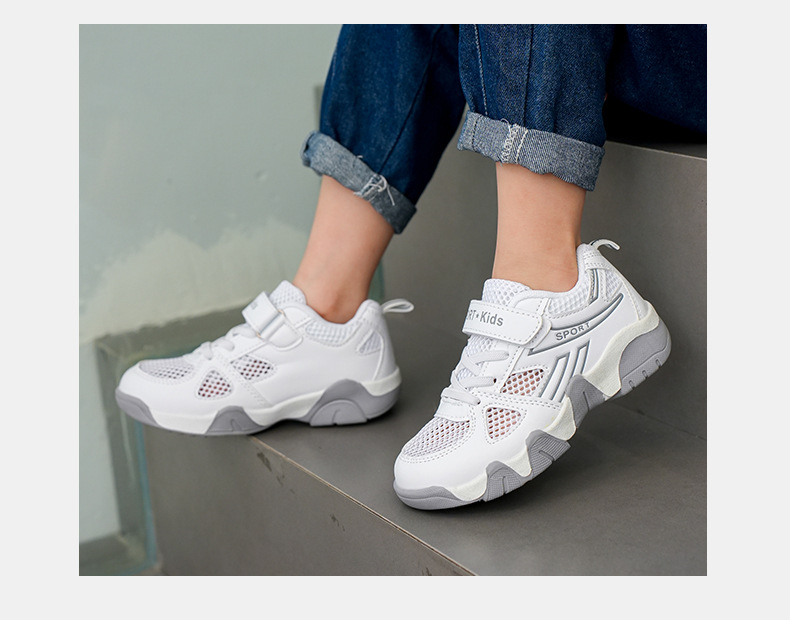 968 공장 직접 공급 어린이 신발 도매 메쉬 스포츠 신발 크로스 보더 통기성 어린이 메쉬 신발 소년 캠퍼스 흰색 신발