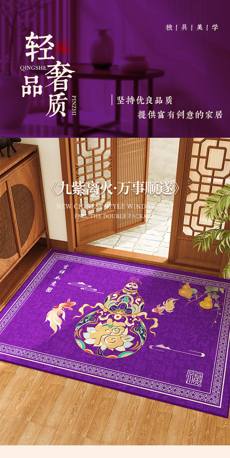 招财入户门地垫 防滑地垫 紫气东来九紫离火地毯 玄关门口蹭土除尘脚垫