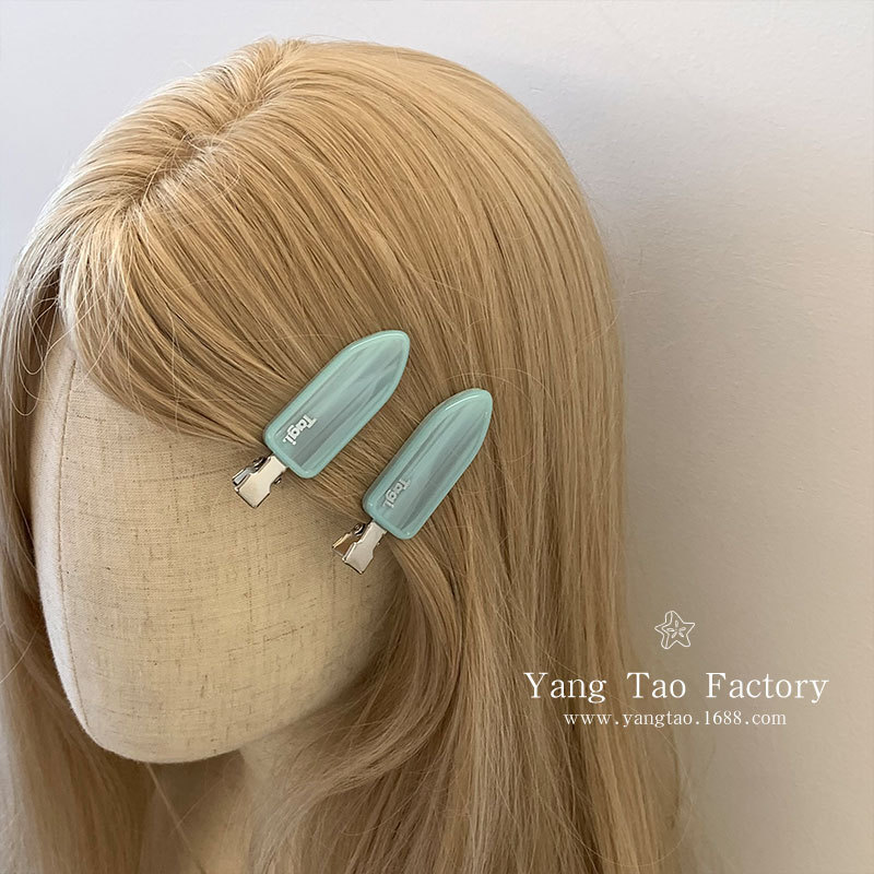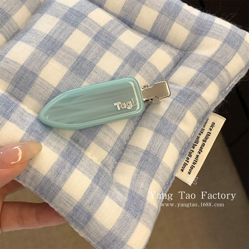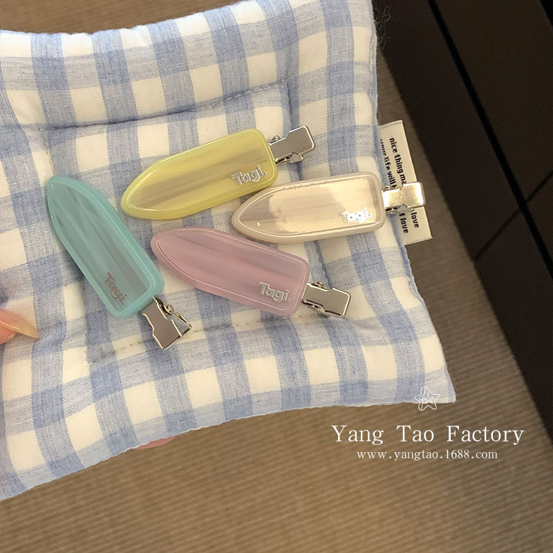 2025 신상 마카롱 아세테이트 사이드 클립 한국식 심플 머리핀 레터링 심리스 스위트 앞머리 클립 재고 있음