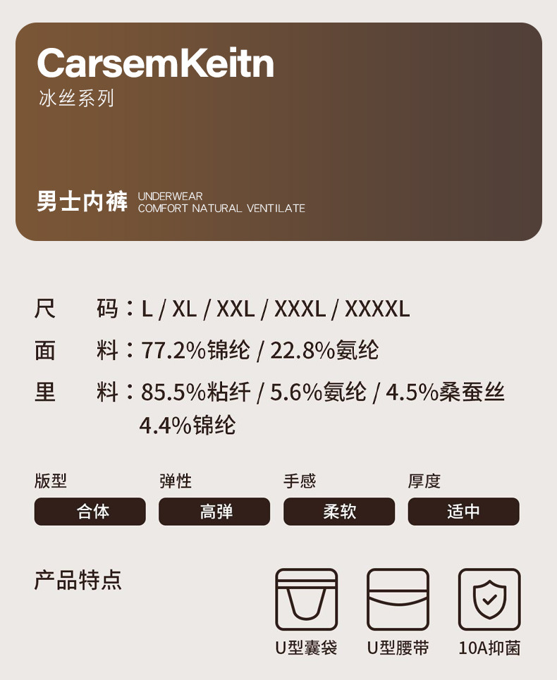 CarsemKeitn 라이트 럭셔리 새틴 남성용 아이스 실크 속옷 뽕나무 실크 항균 내부 가랑이 누드 소년 복서 팬티스토어 가기