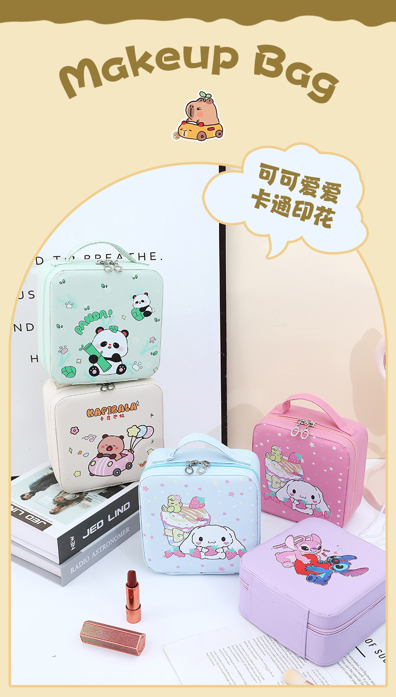 만화 휴대용 화장품 가방 어린이 생일 선물 상자 크리 에이 티브 귀여운 대용량 화장품 케이스 휴대용 작은 저장 상자